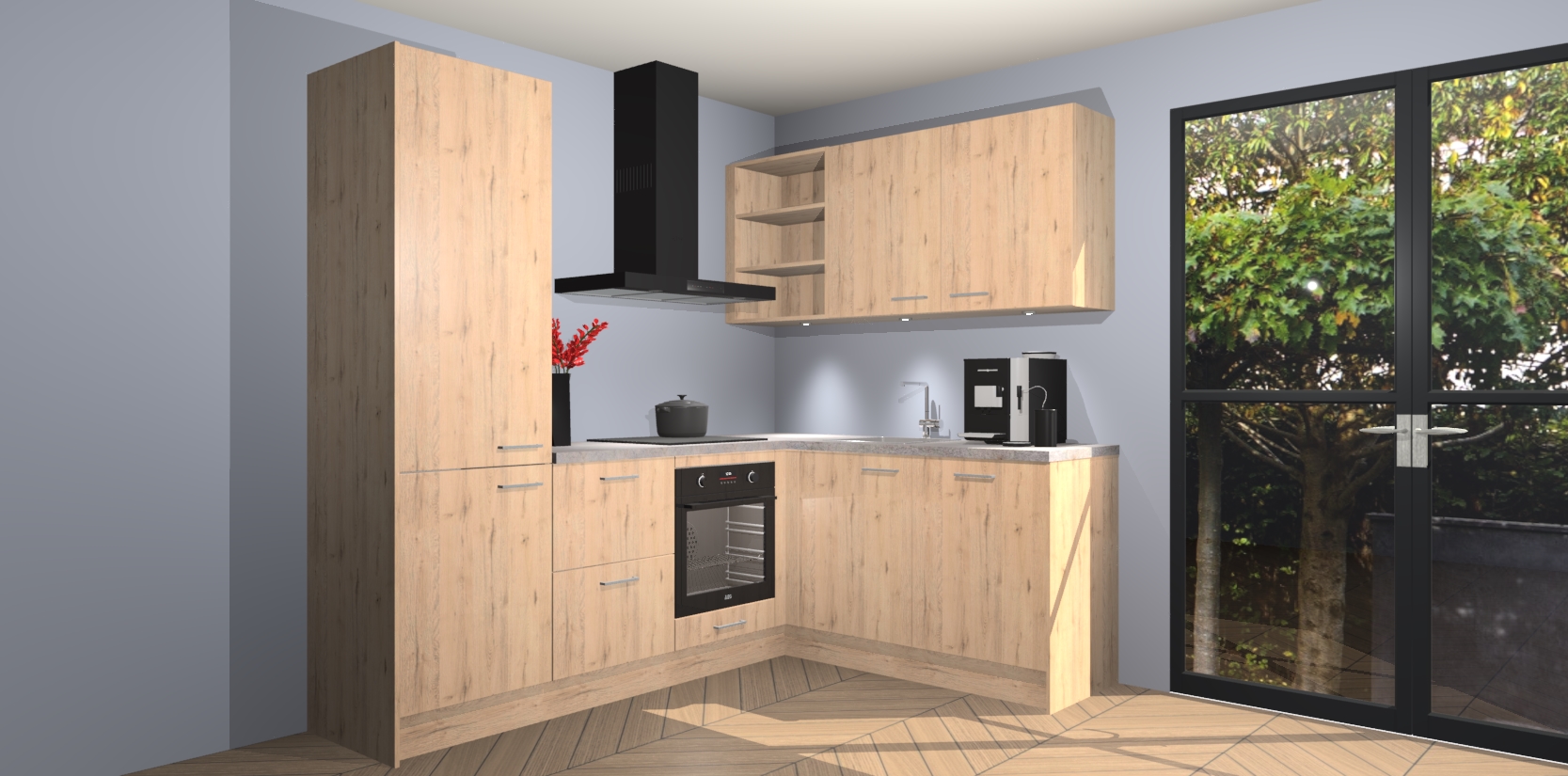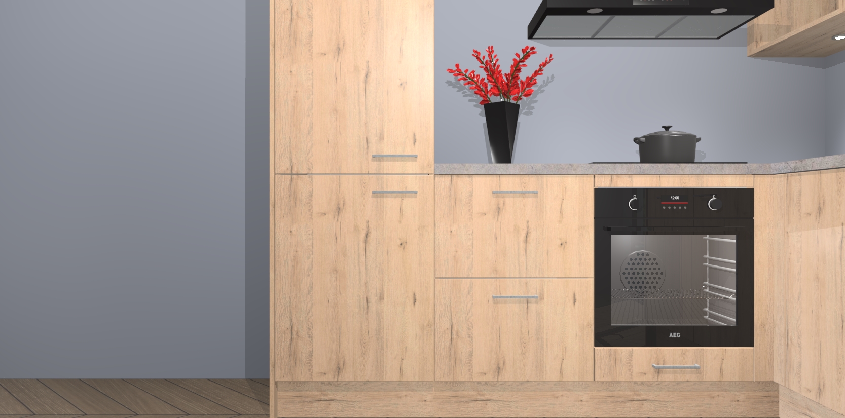 Wauw, dit is de Madera Natuur keuken Pilsen! U kunt gerust zeggen dat u elegantie combineert met functionaliteit met deze keuken. Met een modern en chique ontwerp is de keuken precies wat u nodig heeft om uw ruimte te verfraaien. De binnenzijde van de kasten is in dezelfde donkere kleur als de buitenzijde voor een uniforme look, compleet met softclose-kasten die stil sluiten.