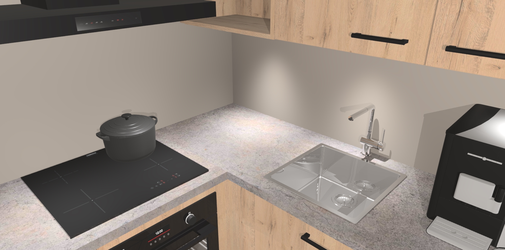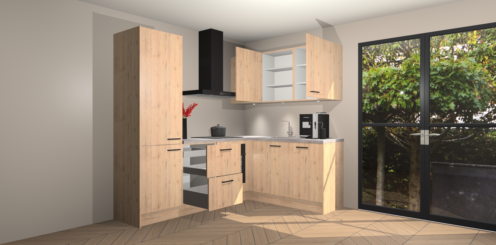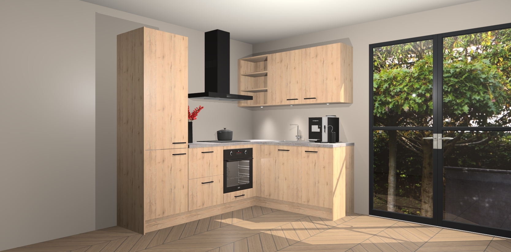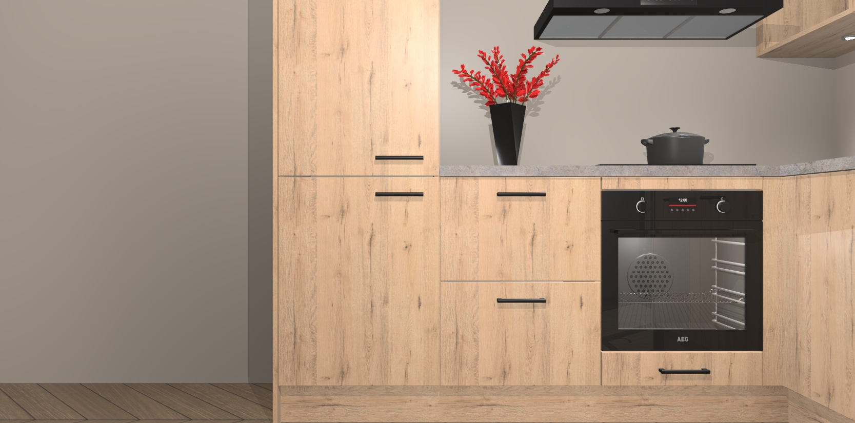 Wauw, dit is de Madera Natuur keuken Pilsen! U kunt gerust zeggen dat u elegantie combineert met functionaliteit met deze keuken. Met een modern en chique ontwerp is de keuken precies wat u nodig heeft om uw ruimte te verfraaien. De binnenzijde van de kasten is in dezelfde donkere kleur als de buitenzijde voor een uniforme look, compleet met softclose-kasten die stil sluiten.