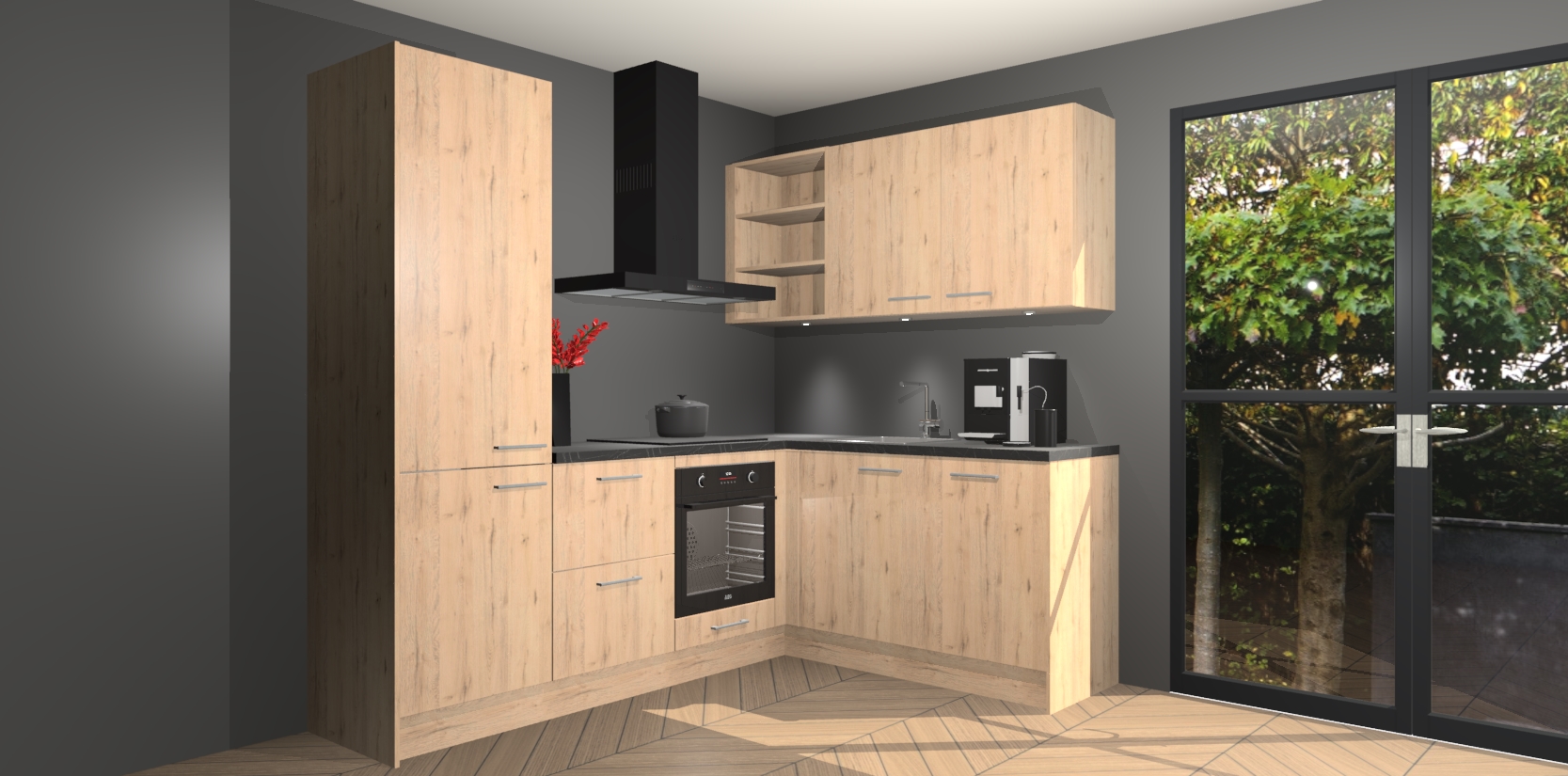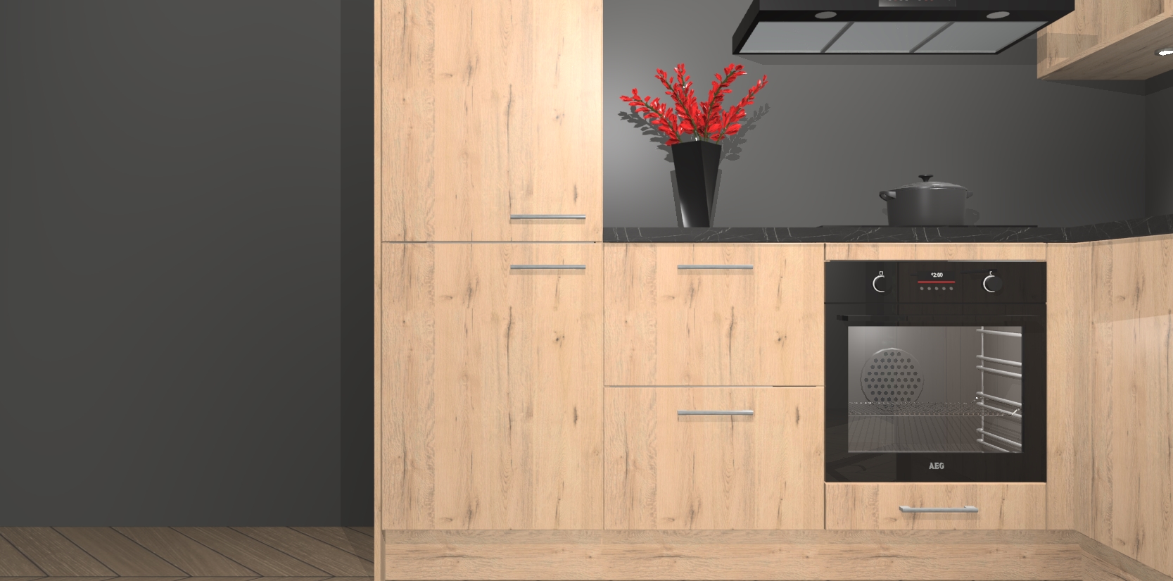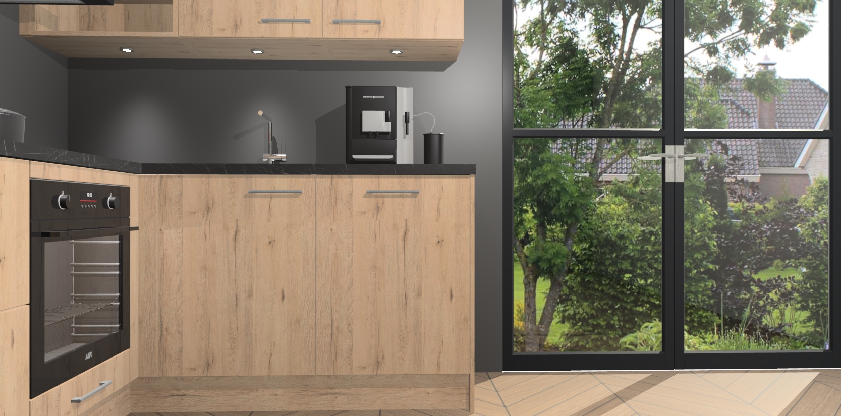 Wauw, dit is de Madera Natuur keuken Pilsen! U kunt gerust zeggen dat u elegantie combineert met functionaliteit met deze keuken. Met een modern en chique ontwerp is de keuken precies wat u nodig heeft om uw ruimte te verfraaien. De binnenzijde van de kasten is in dezelfde donkere kleur als de buitenzijde voor een uniforme look, compleet met softclose-kasten die stil sluiten.
