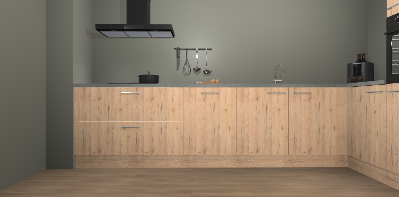 Welkom bij de Madera Natuur keuken Portland. Deze prachtige keuken zal de komende jaren het middelpunt van de belangstelling in uw huis zijn. Uitgerust met vijf inbouwapparaten komt u nooit kookgereedschap tekort. Bovendien geeft de warme houtlook elke ruimte een uitnodigende en tijdloze uitstraling.