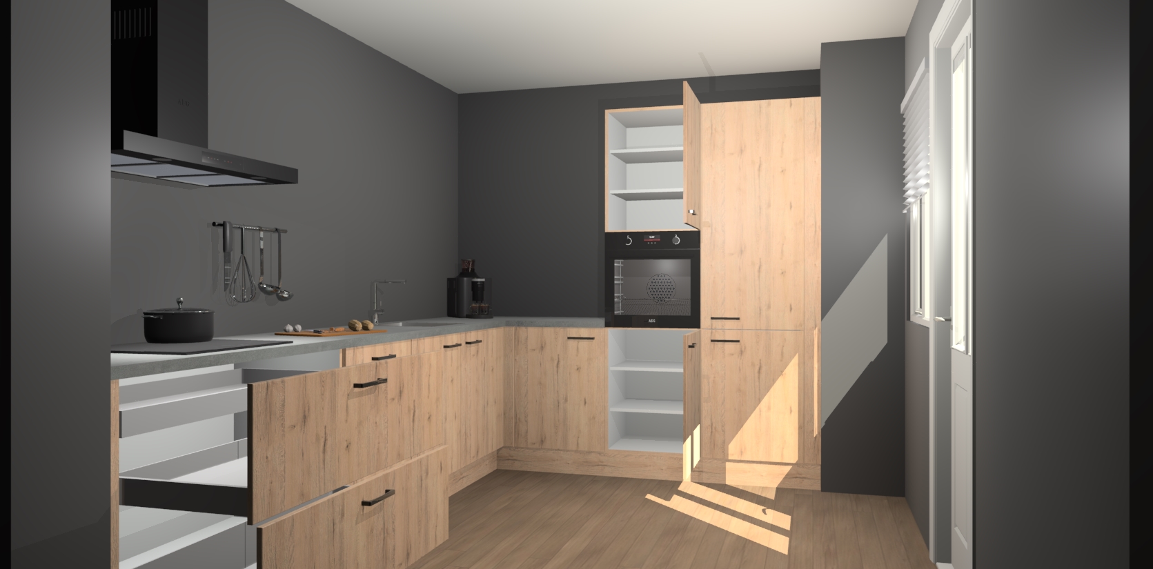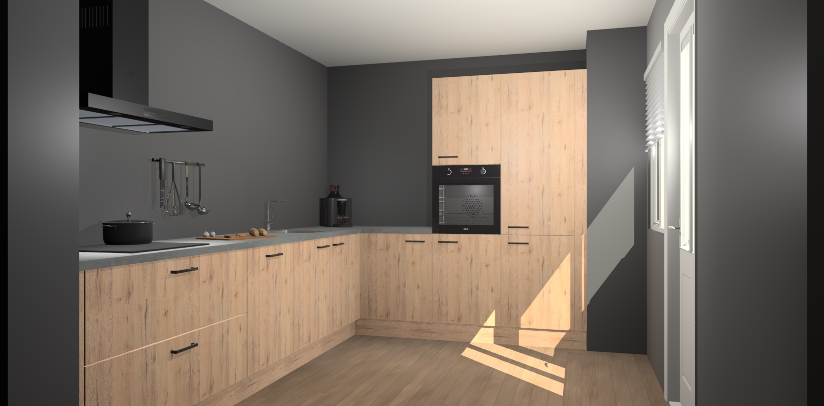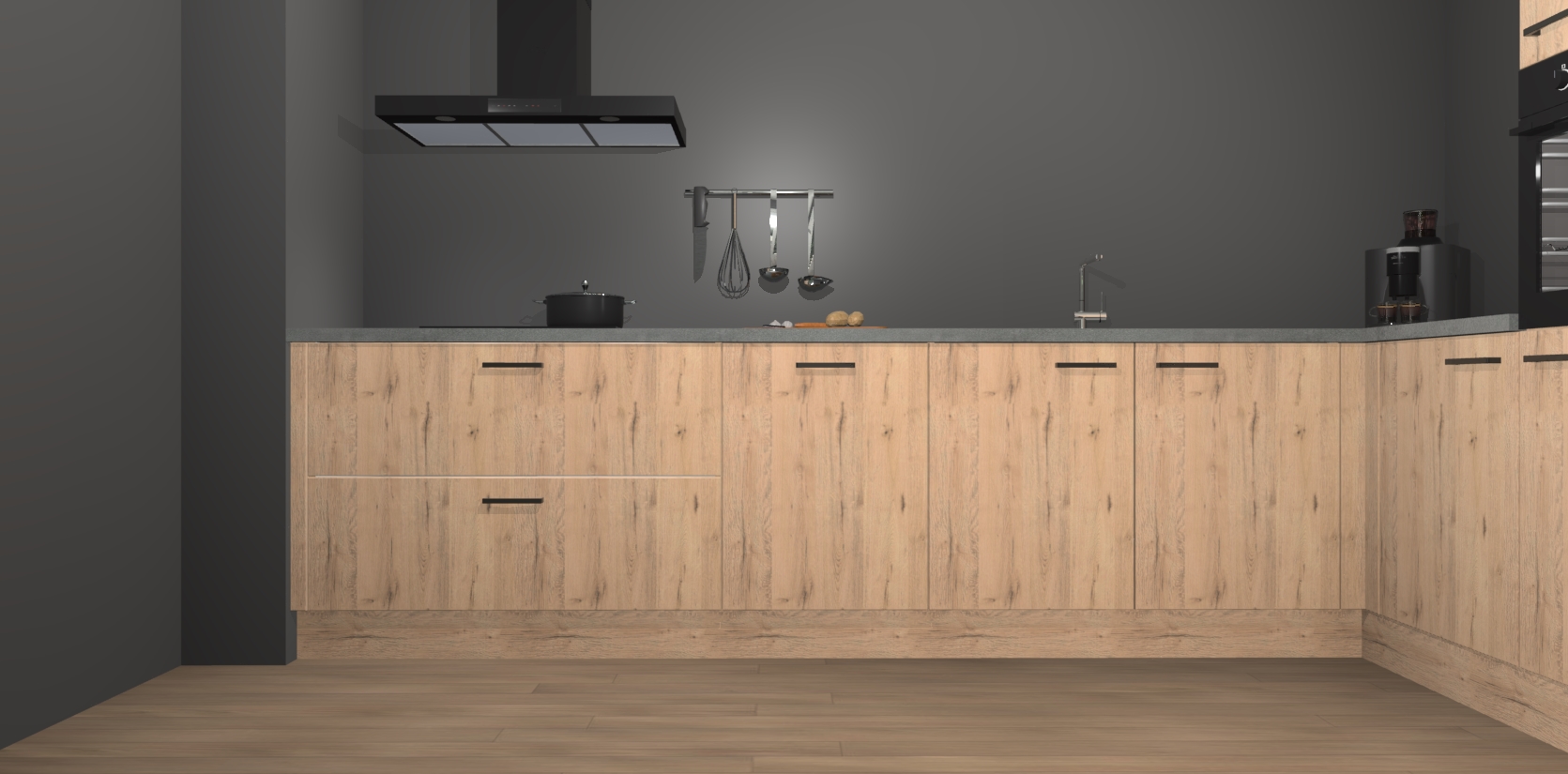 Welkom bij de Madera Natuur keuken Portland. Deze prachtige keuken zal de komende jaren het middelpunt van de belangstelling in uw huis zijn. Uitgerust met vijf inbouwapparaten komt u nooit kookgereedschap tekort. Bovendien geeft de warme houtlook elke ruimte een uitnodigende en tijdloze uitstraling.