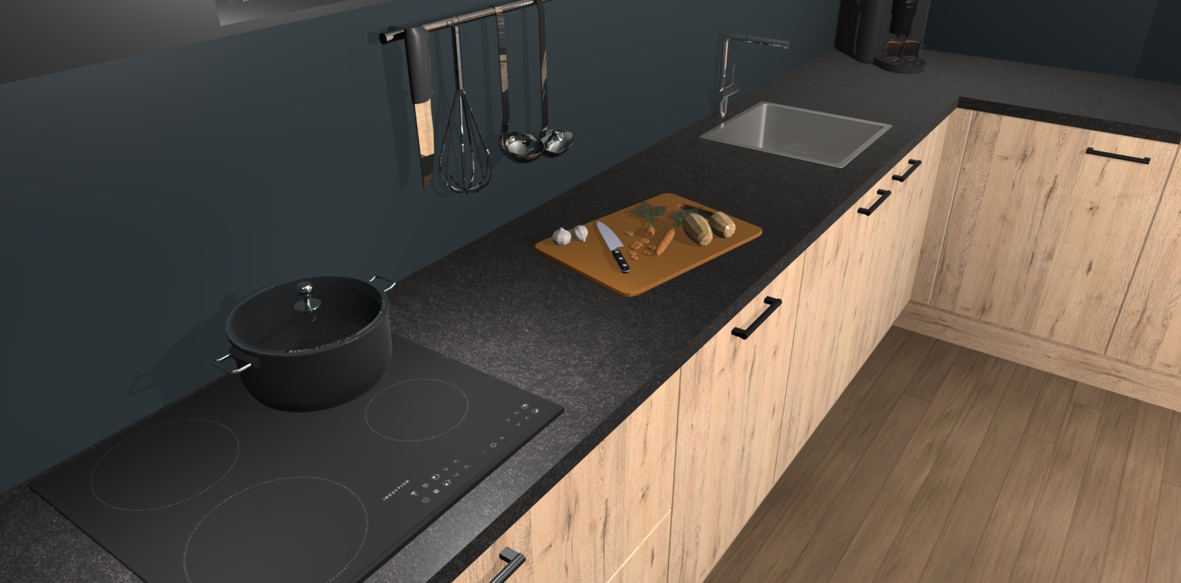 - Bij een hoekwerkblad zijn de hoeken in gevreesd en op maat gemaakt