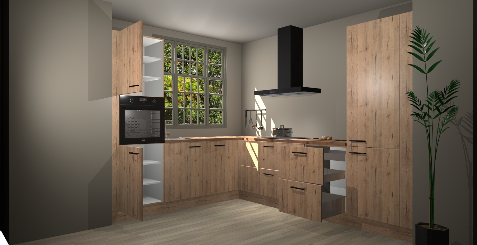 Met een modern, tijdloos design en ruime opslagruimte, zult u zich in no-time thuis voelen in uw nieuwe keuken. Uw leven wordt eenvoudiger met de soft-close deuren die voor het ultieme stille comfort zorgen - geen geluid dat u stoort terwijl u kookt. Ook is de keuken voorzien van 5 ingebouwde apparaten: een oven, inductie kookplaat, afzuigkap, vaatwasser en koelkast. Deze kunnen gemakkelijk na bestelling worden bijgewerkt naar AEG - waardoor uw luxe ervaring compleet is.