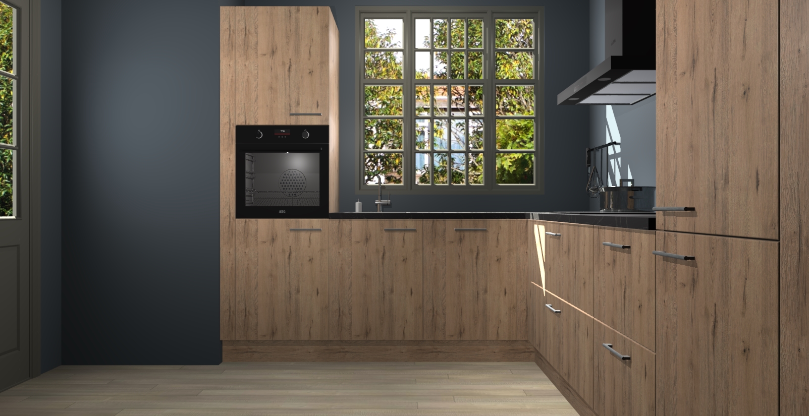 Met een modern, tijdloos design en ruime opslagruimte, zult u zich in no-time thuis voelen in uw nieuwe keuken. Uw leven wordt eenvoudiger met de soft-close deuren die voor het ultieme stille comfort zorgen - geen geluid dat u stoort terwijl u kookt. Ook is de keuken voorzien van 5 ingebouwde apparaten: een oven, inductie kookplaat, afzuigkap, vaatwasser en koelkast. Deze kunnen gemakkelijk na bestelling worden bijgewerkt naar AEG - waardoor uw luxe ervaring compleet is.