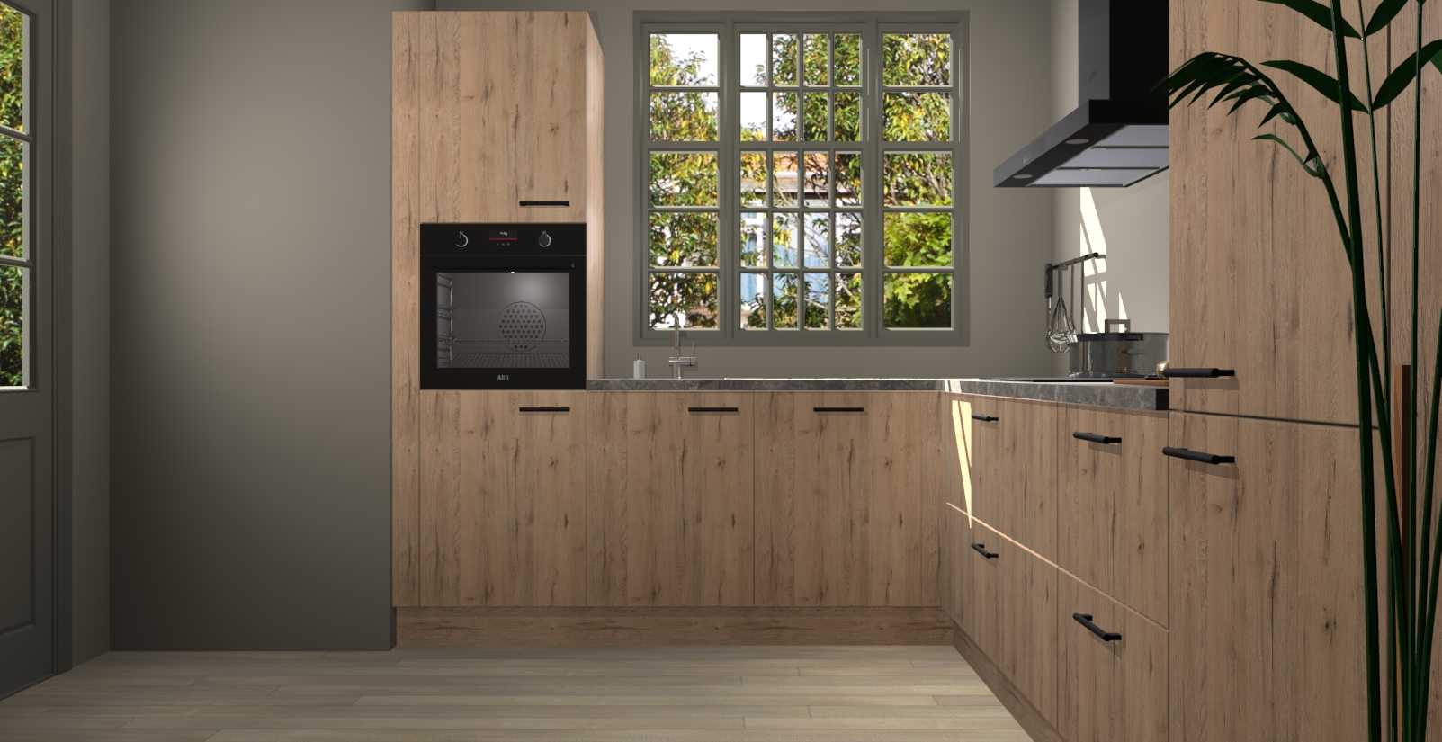 Met een modern, tijdloos design en ruime opslagruimte, zult u zich in no-time thuis voelen in uw nieuwe keuken. Uw leven wordt eenvoudiger met de soft-close deuren die voor het ultieme stille comfort zorgen - geen geluid dat u stoort terwijl u kookt. Ook is de keuken voorzien van 5 ingebouwde apparaten: een oven, inductie kookplaat, afzuigkap, vaatwasser en koelkast. Deze kunnen gemakkelijk na bestelling worden bijgewerkt naar AEG - waardoor uw luxe ervaring compleet is.