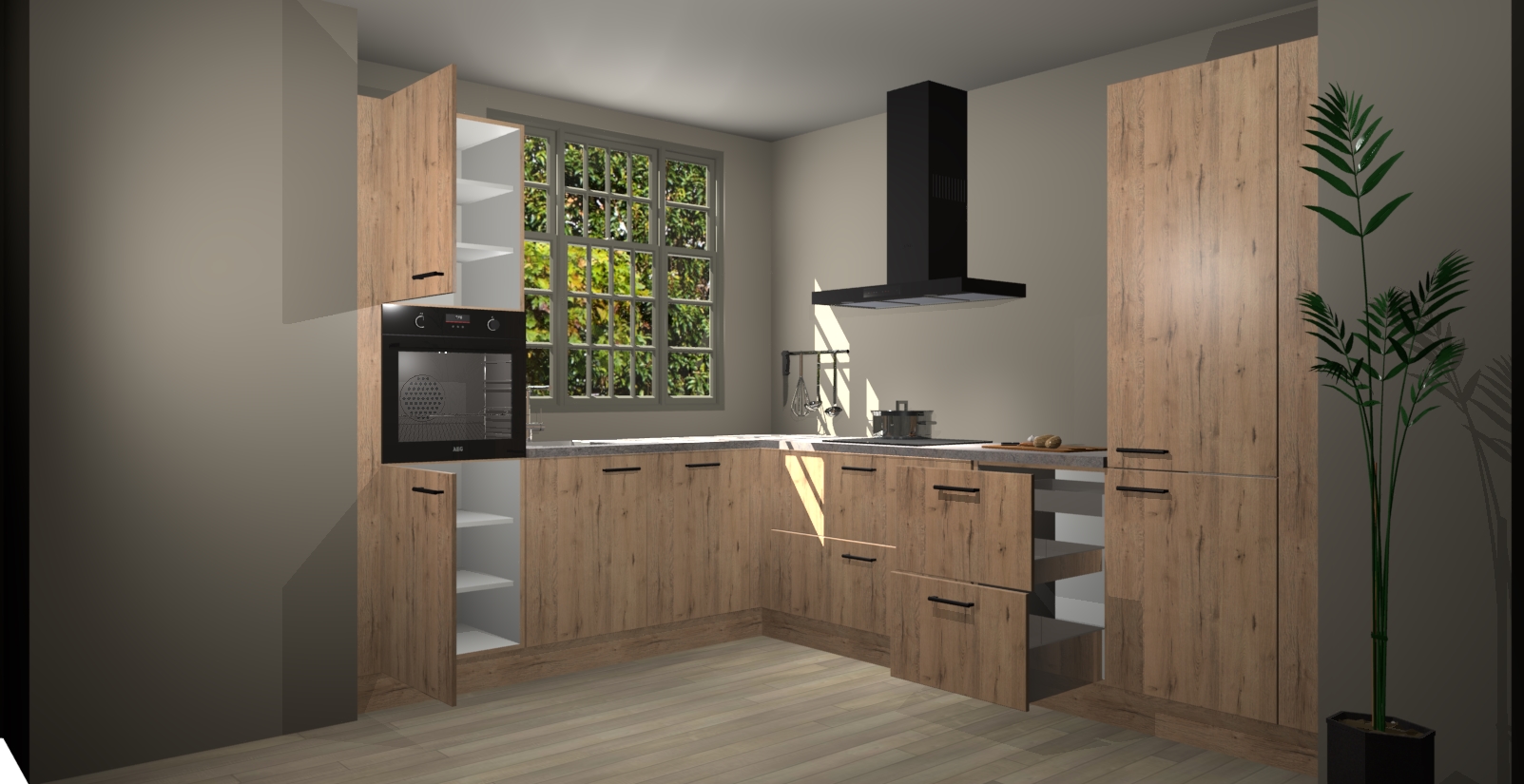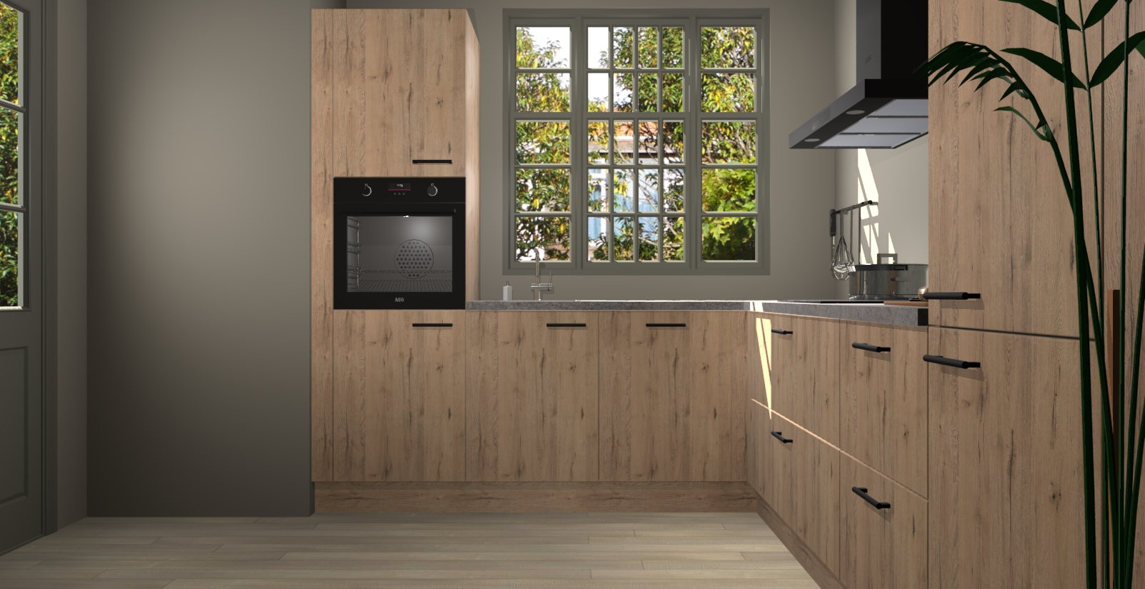 Met een modern, tijdloos design en ruime opslagruimte, zult u zich in no-time thuis voelen in uw nieuwe keuken. Uw leven wordt eenvoudiger met de soft-close deuren die voor het ultieme stille comfort zorgen - geen geluid dat u stoort terwijl u kookt. Ook is de keuken voorzien van 5 ingebouwde apparaten: een oven, inductie kookplaat, afzuigkap, vaatwasser en koelkast. Deze kunnen gemakkelijk na bestelling worden bijgewerkt naar AEG - waardoor uw luxe ervaring compleet is.