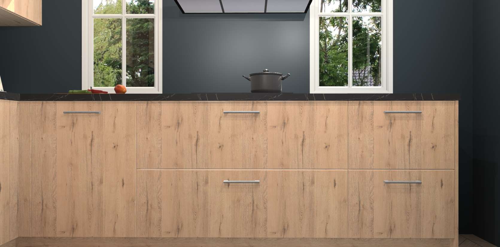 In deze box zijn alle kleuren verzameld van de deuren en werkbladen. Vraag de gratis kleurenbox aan en kijk thuis rustig verder!