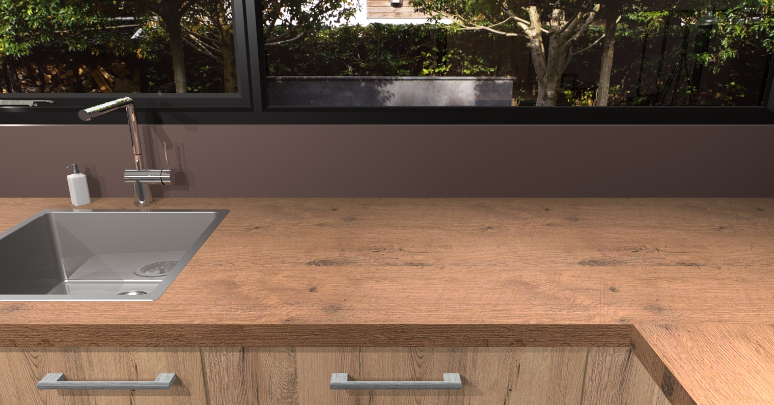 - Bij een hoekwerkblad zijn de hoeken in gevreesd en op maat gemaakt