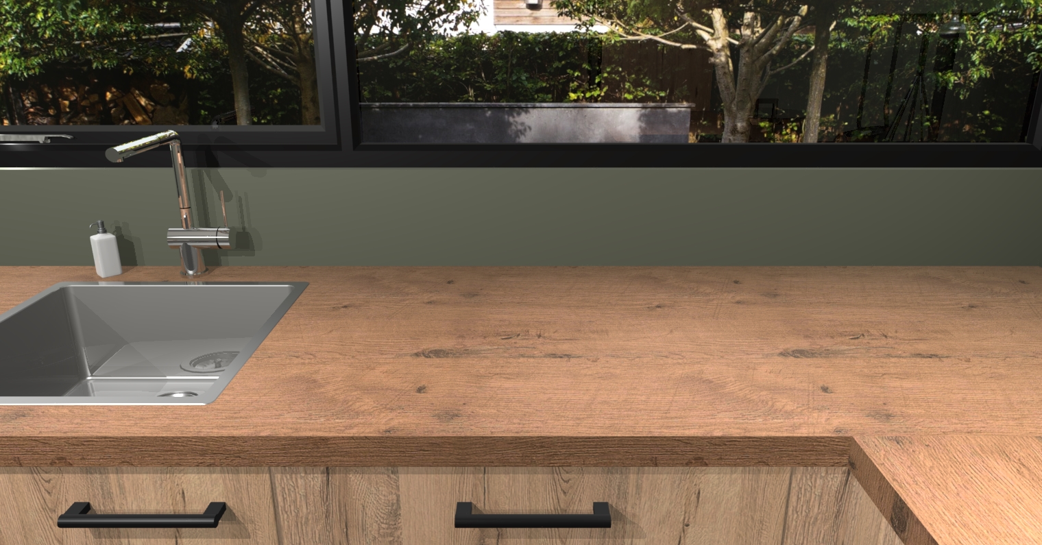 - Bij een hoekwerkblad zijn de hoeken in gevreesd en op maat gemaakt
