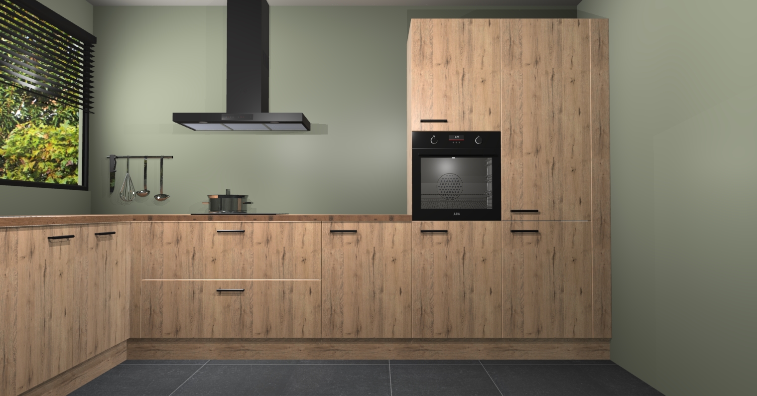 Met een modern, tijdloos design en ruime opslagruimte, zult u zich in no-time thuis voelen in uw nieuwe keuken. Uw leven wordt eenvoudiger met de soft-close deuren die voor het ultieme stille comfort zorgen - geen geluid dat u stoort terwijl u kookt. Ook is de keuken voorzien van 5 ingebouwde apparaten: een oven, inductie kookplaat, afzuigkap, vaatwasser en koelkast. Deze kunnen gemakkelijk na bestelling worden bijgewerkt naar AEG - waardoor uw luxe ervaring compleet is.
