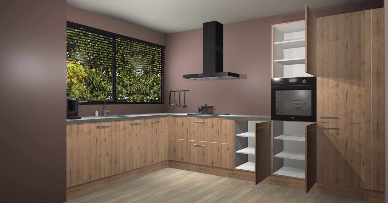 Met een modern, tijdloos design en ruime opslagruimte, zult u zich in no-time thuis voelen in uw nieuwe keuken. Uw leven wordt eenvoudiger met de soft-close deuren die voor het ultieme stille comfort zorgen - geen geluid dat u stoort terwijl u kookt. Ook is de keuken voorzien van 5 ingebouwde apparaten: een oven, inductie kookplaat, afzuigkap, vaatwasser en koelkast. Deze kunnen gemakkelijk na bestelling worden bijgewerkt naar AEG - waardoor uw luxe ervaring compleet is.