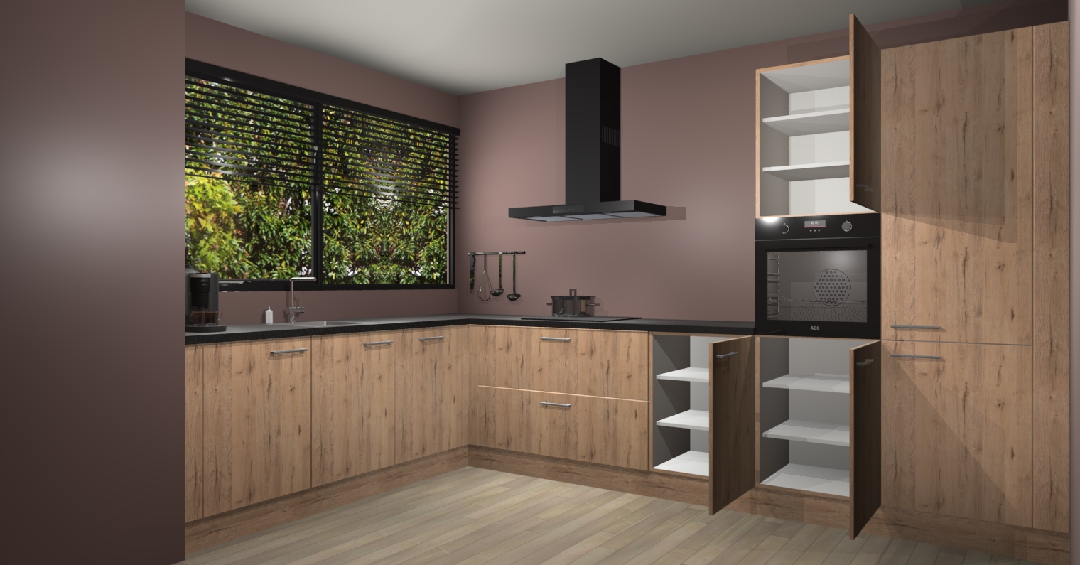 Met een modern, tijdloos design en ruime opslagruimte, zult u zich in no-time thuis voelen in uw nieuwe keuken. Uw leven wordt eenvoudiger met de soft-close deuren die voor het ultieme stille comfort zorgen - geen geluid dat u stoort terwijl u kookt. Ook is de keuken voorzien van 5 ingebouwde apparaten: een oven, inductie kookplaat, afzuigkap, vaatwasser en koelkast. Deze kunnen gemakkelijk na bestelling worden bijgewerkt naar AEG - waardoor uw luxe ervaring compleet is.