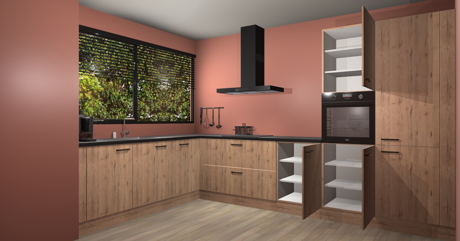 Met een modern, tijdloos design en ruime opslagruimte, zult u zich in no-time thuis voelen in uw nieuwe keuken. Uw leven wordt eenvoudiger met de soft-close deuren die voor het ultieme stille comfort zorgen - geen geluid dat u stoort terwijl u kookt. Ook is de keuken voorzien van 5 ingebouwde apparaten: een oven, inductie kookplaat, afzuigkap, vaatwasser en koelkast. Deze kunnen gemakkelijk na bestelling worden bijgewerkt naar AEG - waardoor uw luxe ervaring compleet is.