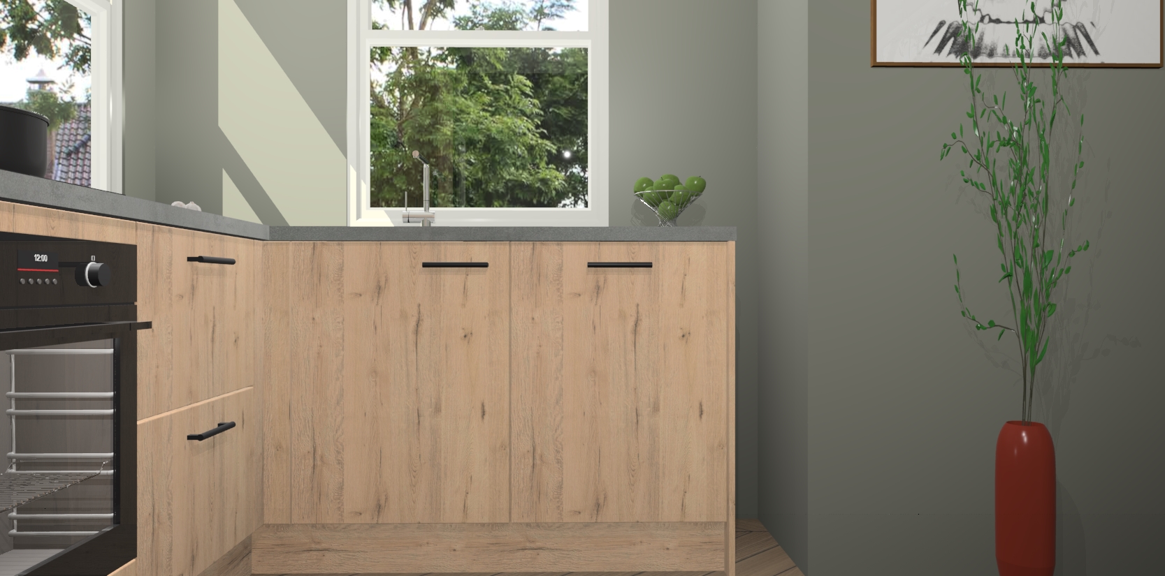 Wat maakt deze keuken zo bijzonder? Ten eerste geeft het houten werkblad uw ruimte een onmiskenbaar klassieke uitstraling. De natuurlijke afwerking roept warmte en elegantie op die nooit uit de mode zullen raken. Bovendien is het gemakkelijk schoon te houden en te onderhouden, zodat je er jarenlang plezier van kunt hebben. Als u op zoek bent naar extra gemak in uw keuken, dan heeft u bij het plaatsen van een bestelling bij ons ook de optie om uw toestellen te upgraden naar AEG-modellen - zo haalt u moderne innovatie van topmerken in apparatentechnologie rechtstreeks in huis.