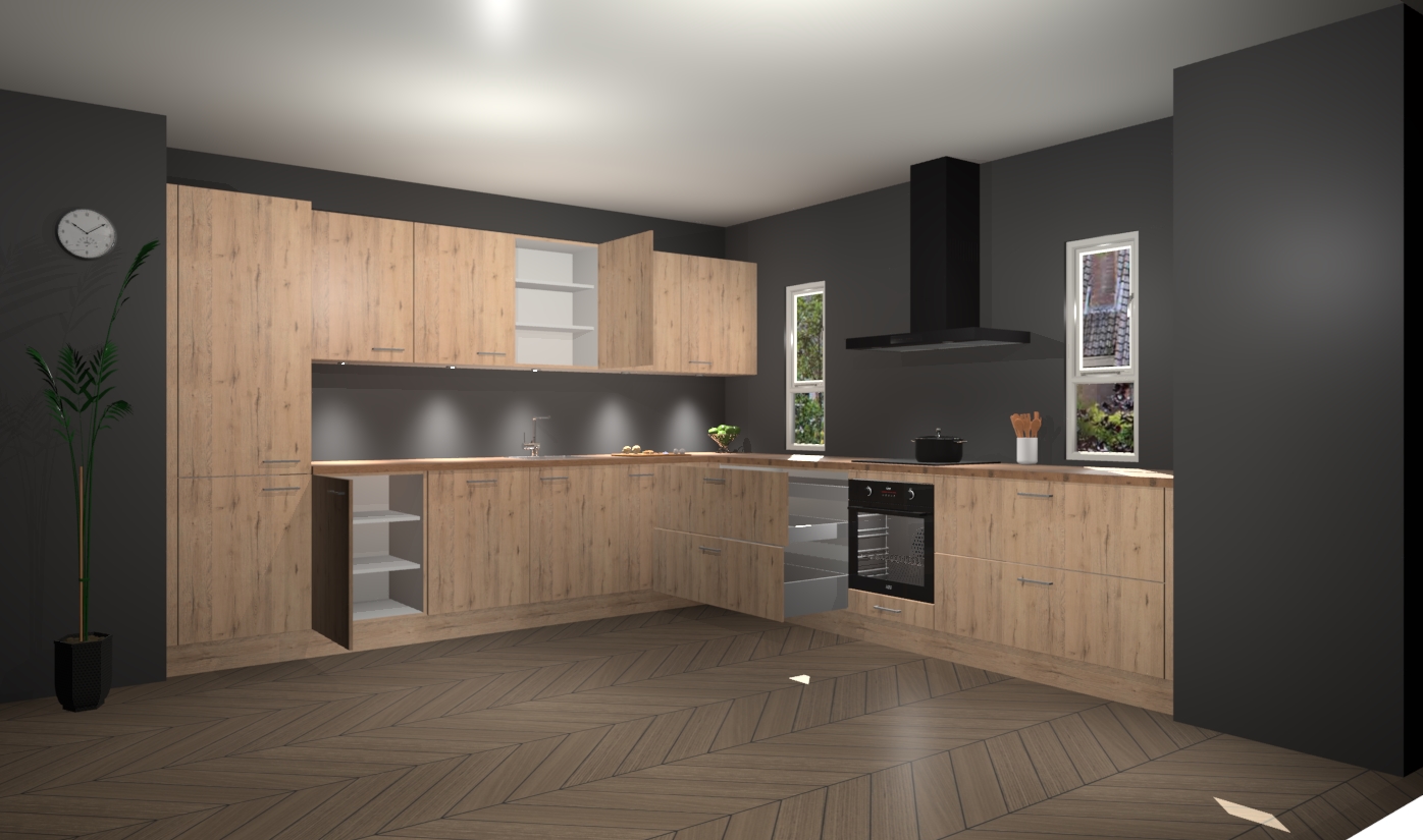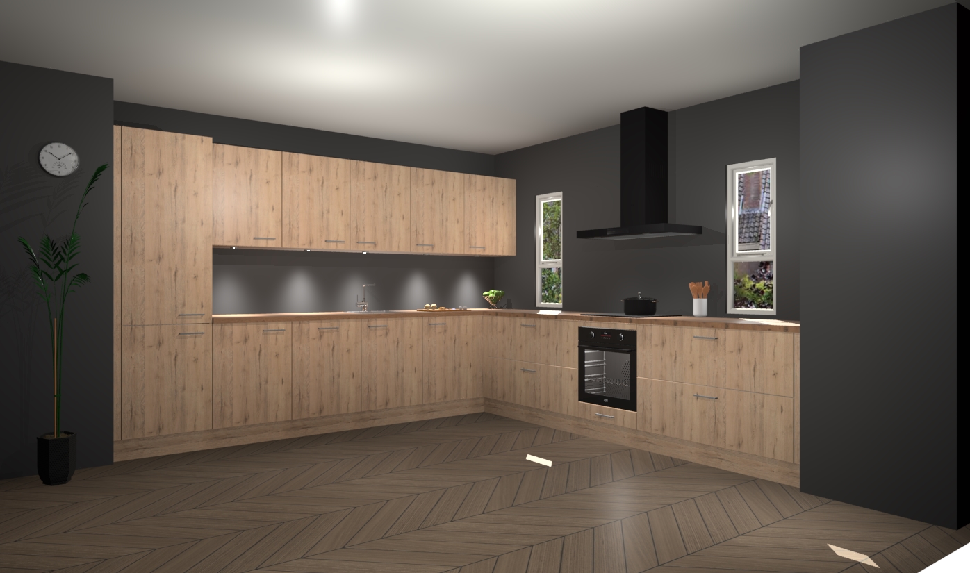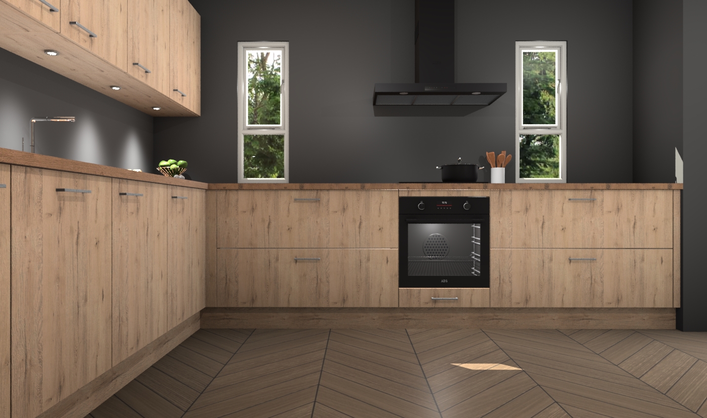De madera natuur keuken is een ideale hoekkeuken en heeft alle functies en apparatuur die u maar nodig kunt hebben. Bij de bestelling krijgt u een oven, inductiekookplaat, afzuigkap, vaatwasser en koelkast - deze kunnen desgewenst eenvoudig worden uitgebreid naar AEG na bestellen. Elke kast wordt ook voor gemonteerd geleverd met soft close deuren die jarenlang gebruik beloven. Stelt u zich voor dat u geen gedoe heeft met vervelende montage - vanaf het moment dat u uw bestelling plaats, duurt het slechts 7 weken voor het bij u thuis geleverd wordt.