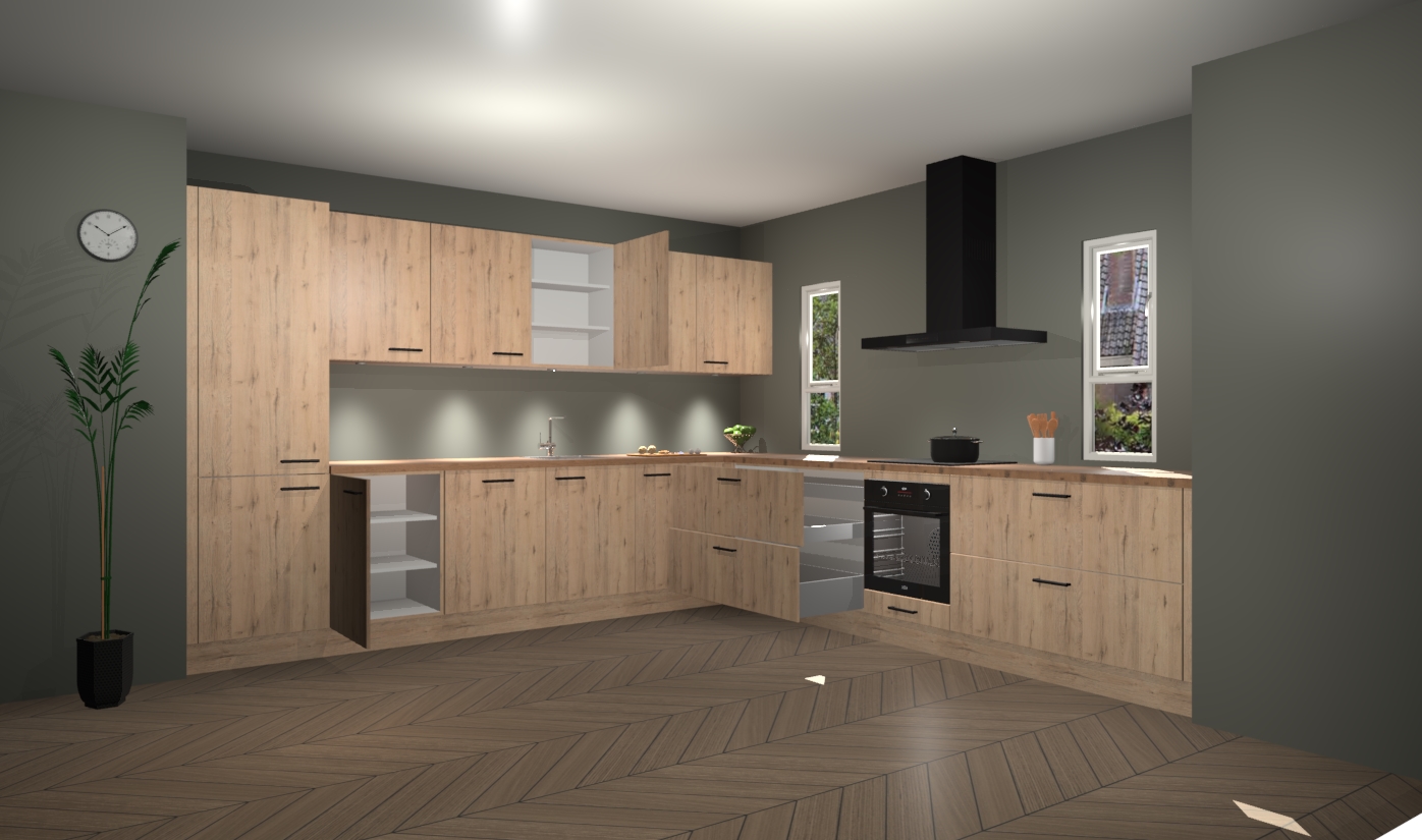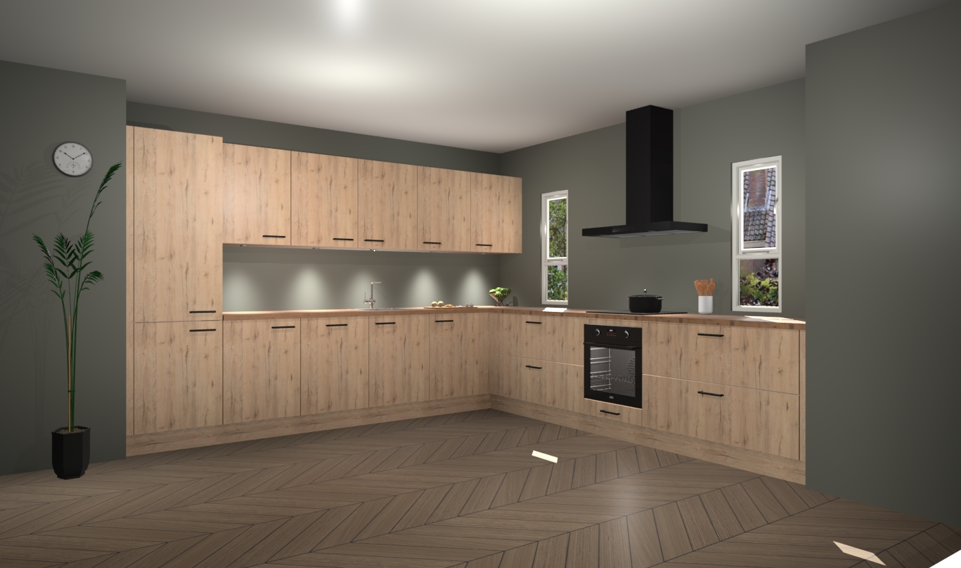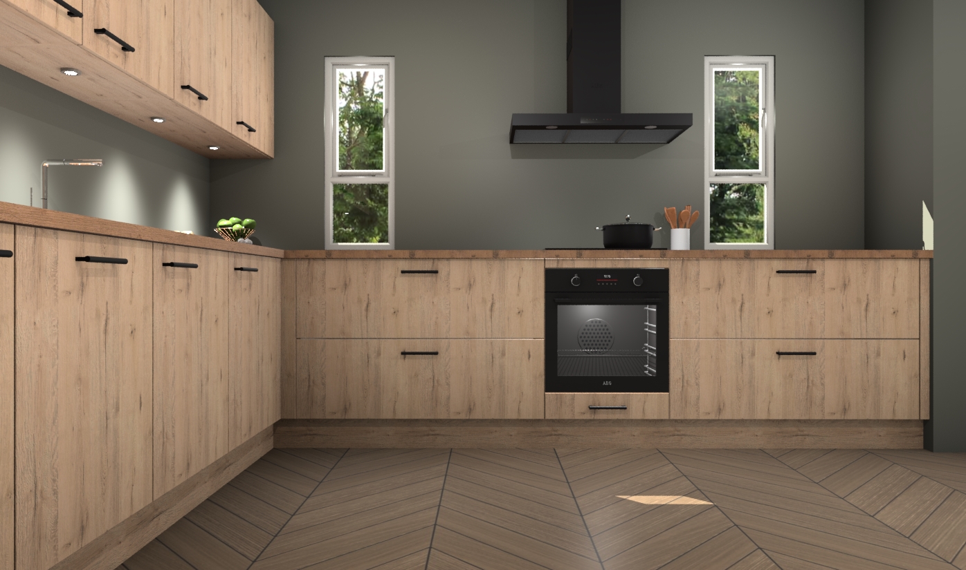 De madera natuur keuken is een ideale hoekkeuken en heeft alle functies en apparatuur die u maar nodig kunt hebben. Bij de bestelling krijgt u een oven, inductiekookplaat, afzuigkap, vaatwasser en koelkast - deze kunnen desgewenst eenvoudig worden uitgebreid naar AEG na bestellen. Elke kast wordt ook voor gemonteerd geleverd met soft close deuren die jarenlang gebruik beloven. Stelt u zich voor dat u geen gedoe heeft met vervelende montage - vanaf het moment dat u uw bestelling plaats, duurt het slechts 7 weken voor het bij u thuis geleverd wordt.