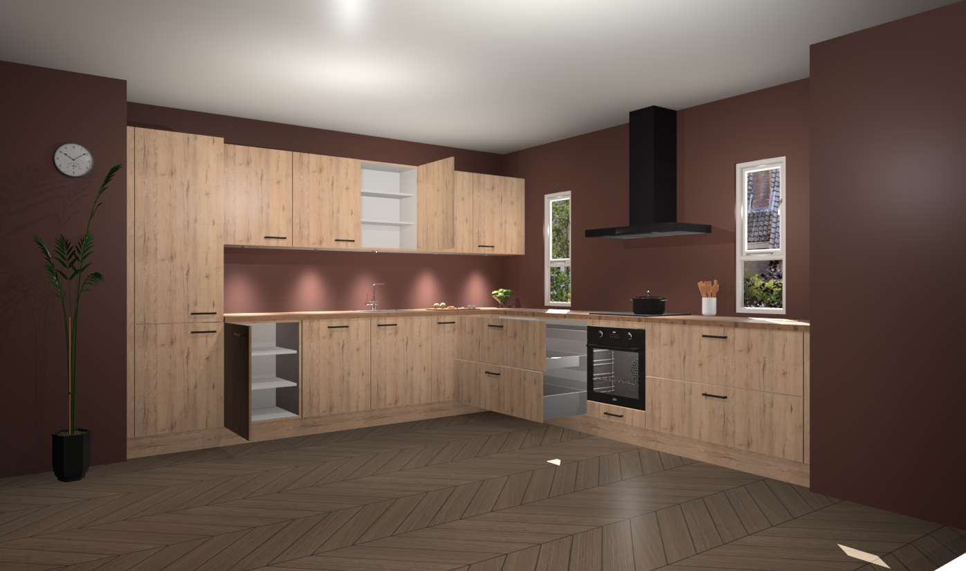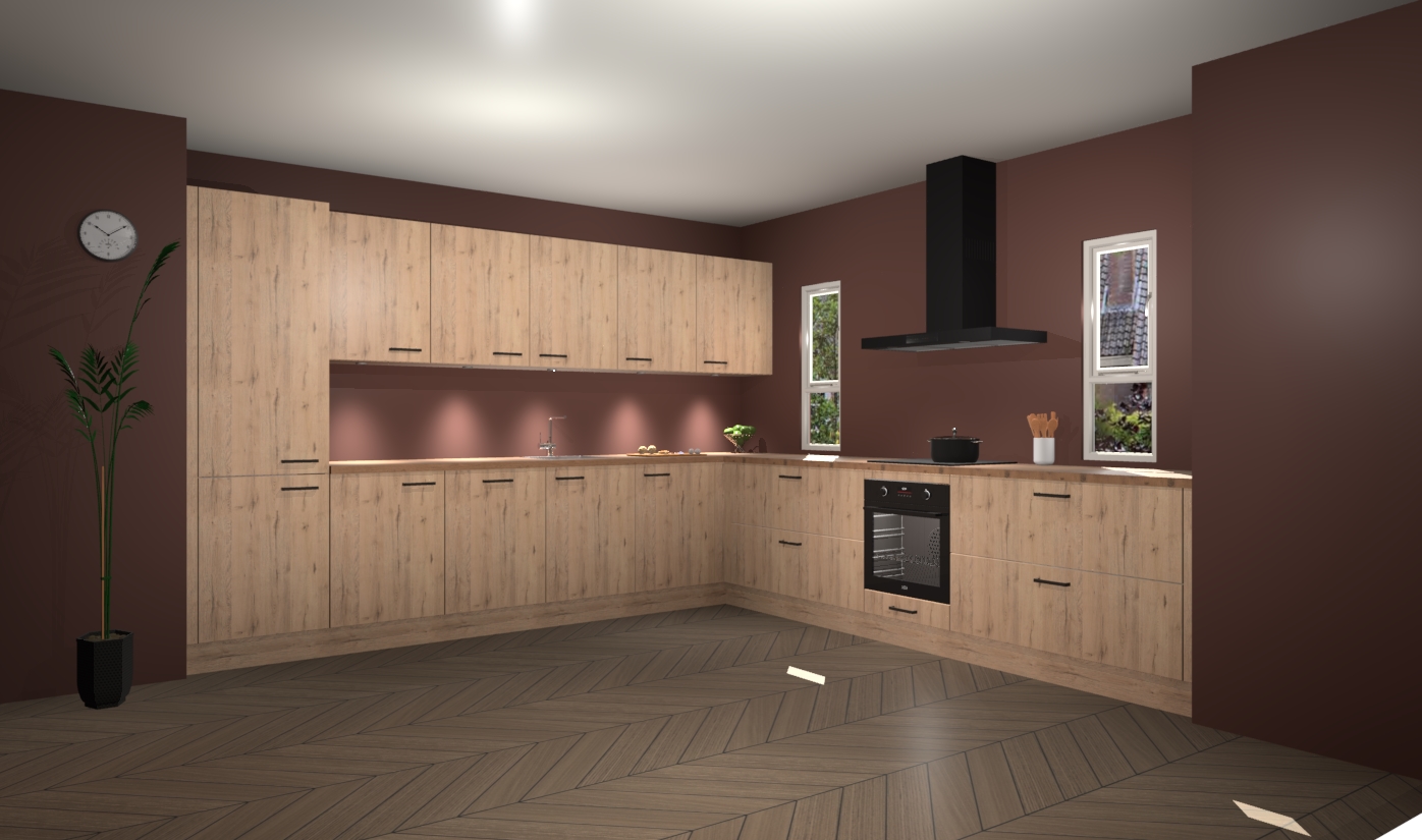 De madera natuur keuken is een ideale hoekkeuken en heeft alle functies en apparatuur die u maar nodig kunt hebben. Bij de bestelling krijgt u een oven, inductiekookplaat, afzuigkap, vaatwasser en koelkast - deze kunnen desgewenst eenvoudig worden uitgebreid naar AEG na bestellen. Elke kast wordt ook voor gemonteerd geleverd met soft close deuren die jarenlang gebruik beloven. Stelt u zich voor dat u geen gedoe heeft met vervelende montage - vanaf het moment dat u uw bestelling plaats, duurt het slechts 7 weken voor het bij u thuis geleverd wordt.