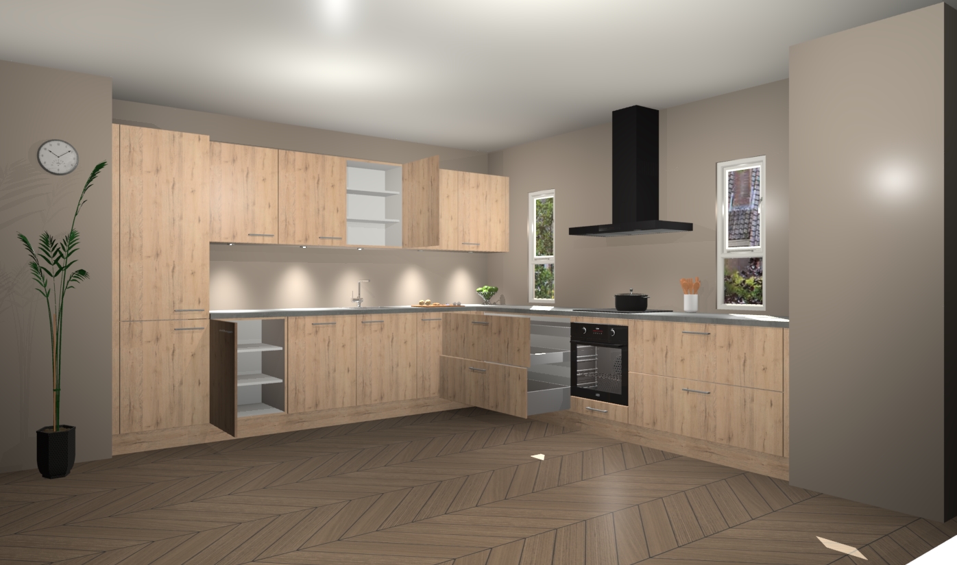 De madera natuur keuken is een ideale hoekkeuken en heeft alle functies en apparatuur die u maar nodig kunt hebben. Bij de bestelling krijgt u een oven, inductiekookplaat, afzuigkap, vaatwasser en koelkast - deze kunnen desgewenst eenvoudig worden uitgebreid naar AEG na bestellen. Elke kast wordt ook voor gemonteerd geleverd met soft close deuren die jarenlang gebruik beloven. Stelt u zich voor dat u geen gedoe heeft met vervelende montage - vanaf het moment dat u uw bestelling plaats, duurt het slechts 7 weken voor het bij u thuis geleverd wordt.