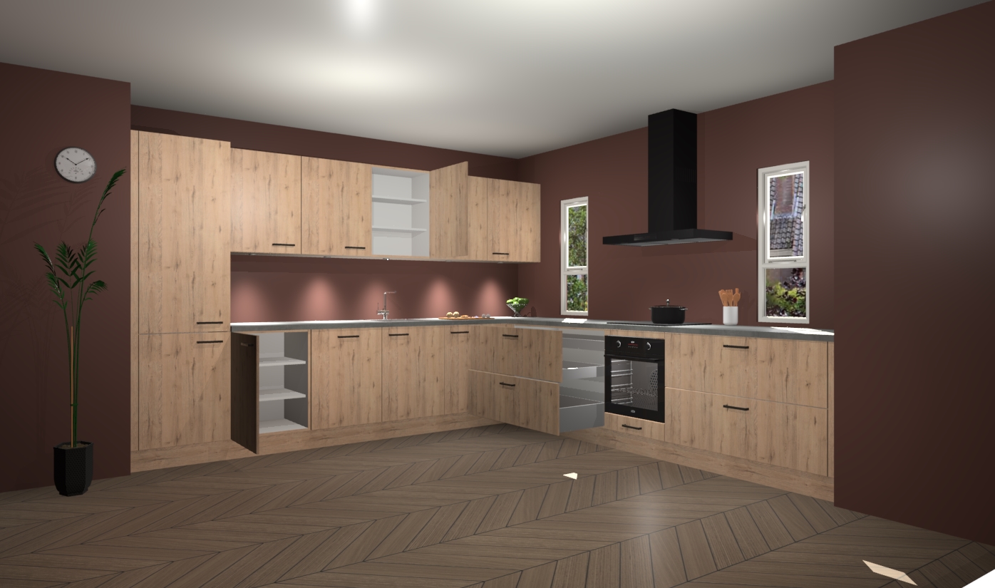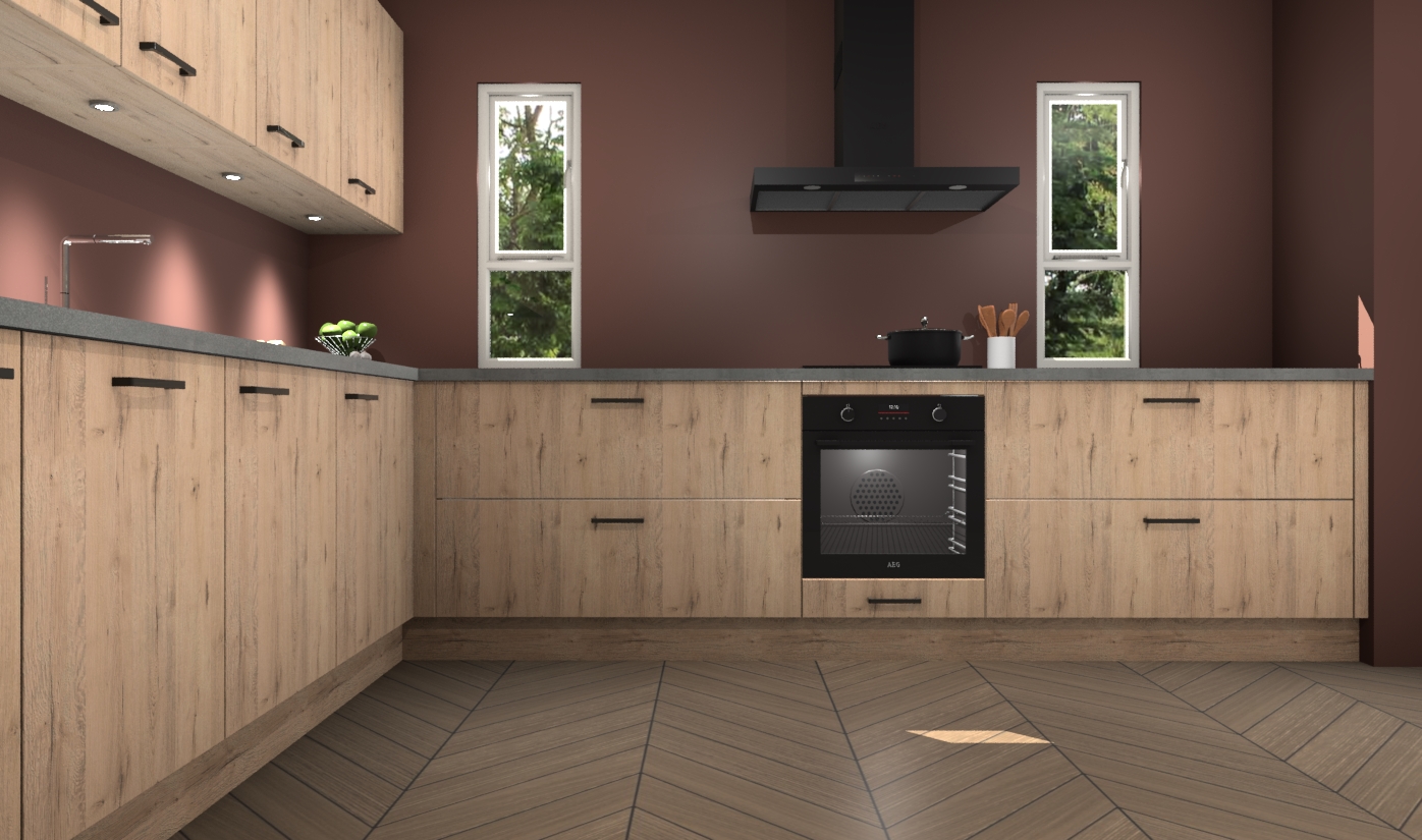 De madera natuur keuken is een ideale hoekkeuken en heeft alle functies en apparatuur die u maar nodig kunt hebben. Bij de bestelling krijgt u een oven, inductiekookplaat, afzuigkap, vaatwasser en koelkast - deze kunnen desgewenst eenvoudig worden uitgebreid naar AEG na bestellen. Elke kast wordt ook voor gemonteerd geleverd met soft close deuren die jarenlang gebruik beloven. Stelt u zich voor dat u geen gedoe heeft met vervelende montage - vanaf het moment dat u uw bestelling plaats, duurt het slechts 7 weken voor het bij u thuis geleverd wordt.