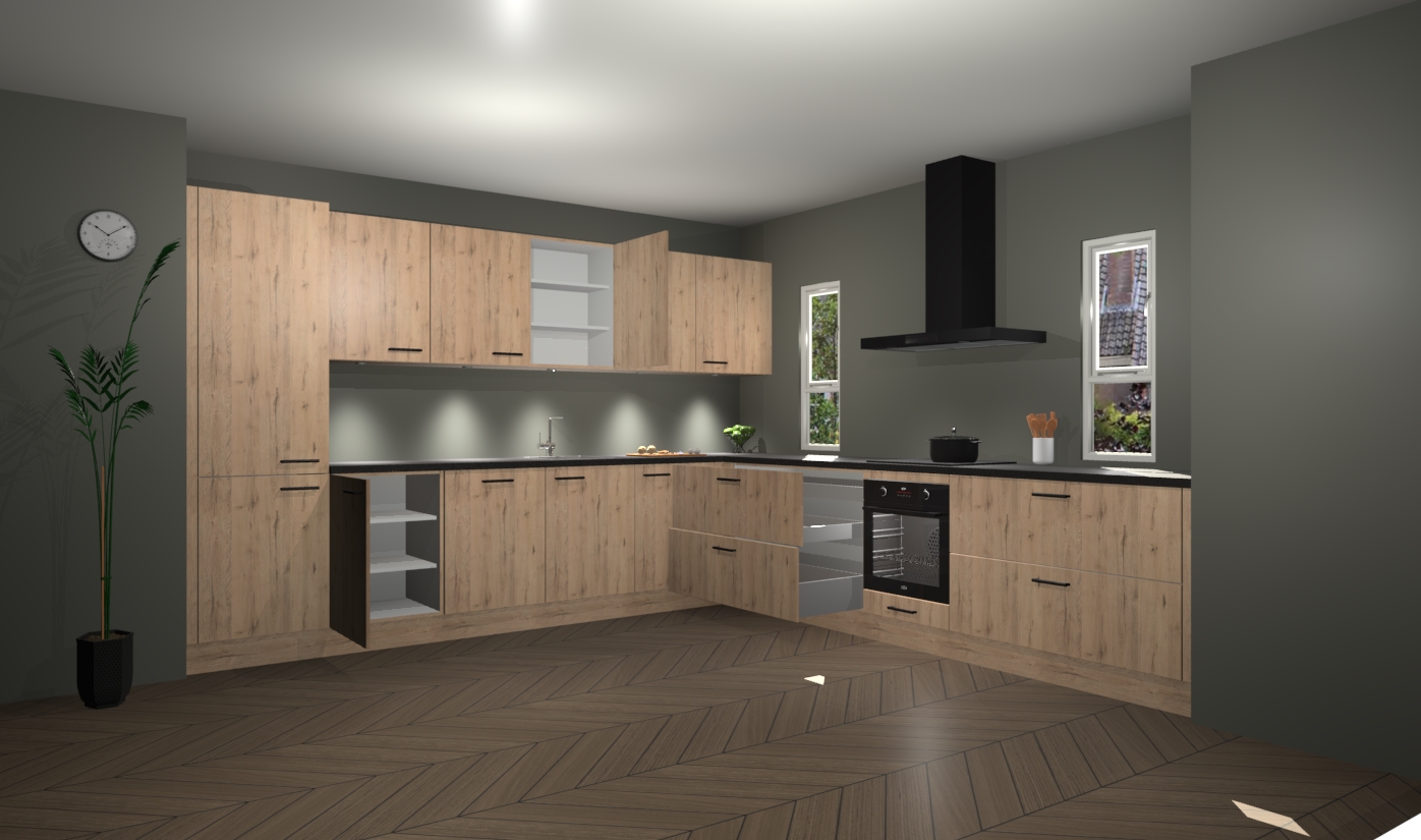 De madera natuur keuken is een ideale hoekkeuken en heeft alle functies en apparatuur die u maar nodig kunt hebben. Bij de bestelling krijgt u een oven, inductiekookplaat, afzuigkap, vaatwasser en koelkast - deze kunnen desgewenst eenvoudig worden uitgebreid naar AEG na bestellen. Elke kast wordt ook voor gemonteerd geleverd met soft close deuren die jarenlang gebruik beloven. Stelt u zich voor dat u geen gedoe heeft met vervelende montage - vanaf het moment dat u uw bestelling plaats, duurt het slechts 7 weken voor het bij u thuis geleverd wordt.
