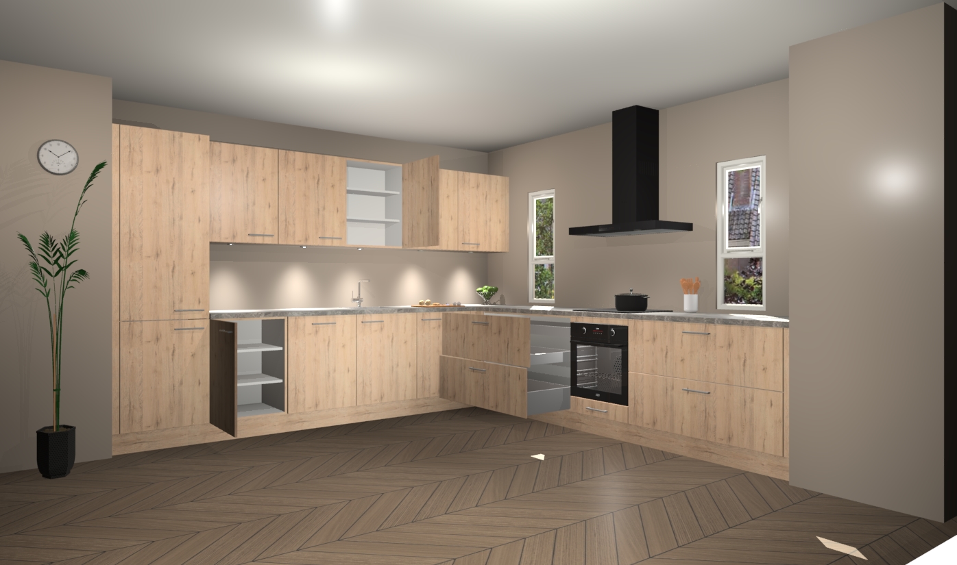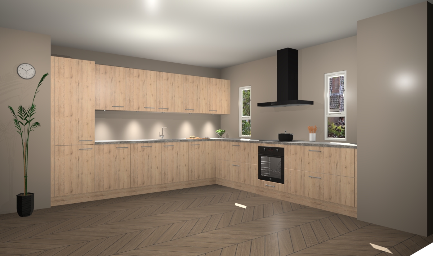 De madera natuur keuken is een ideale hoekkeuken en heeft alle functies en apparatuur die u maar nodig kunt hebben. Bij de bestelling krijgt u een oven, inductiekookplaat, afzuigkap, vaatwasser en koelkast - deze kunnen desgewenst eenvoudig worden uitgebreid naar AEG na bestellen. Elke kast wordt ook voor gemonteerd geleverd met soft close deuren die jarenlang gebruik beloven. Stelt u zich voor dat u geen gedoe heeft met vervelende montage - vanaf het moment dat u uw bestelling plaats, duurt het slechts 7 weken voor het bij u thuis geleverd wordt.