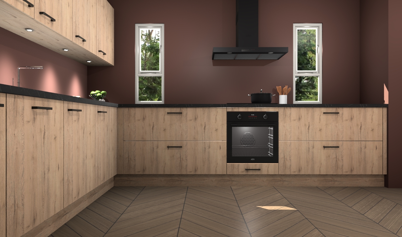 De madera natuur keuken is een ideale hoekkeuken en heeft alle functies en apparatuur die u maar nodig kunt hebben. Bij de bestelling krijgt u een oven, inductiekookplaat, afzuigkap, vaatwasser en koelkast - deze kunnen desgewenst eenvoudig worden uitgebreid naar AEG na bestellen. Elke kast wordt ook voor gemonteerd geleverd met soft close deuren die jarenlang gebruik beloven. Stelt u zich voor dat u geen gedoe heeft met vervelende montage - vanaf het moment dat u uw bestelling plaats, duurt het slechts 7 weken voor het bij u thuis geleverd wordt.