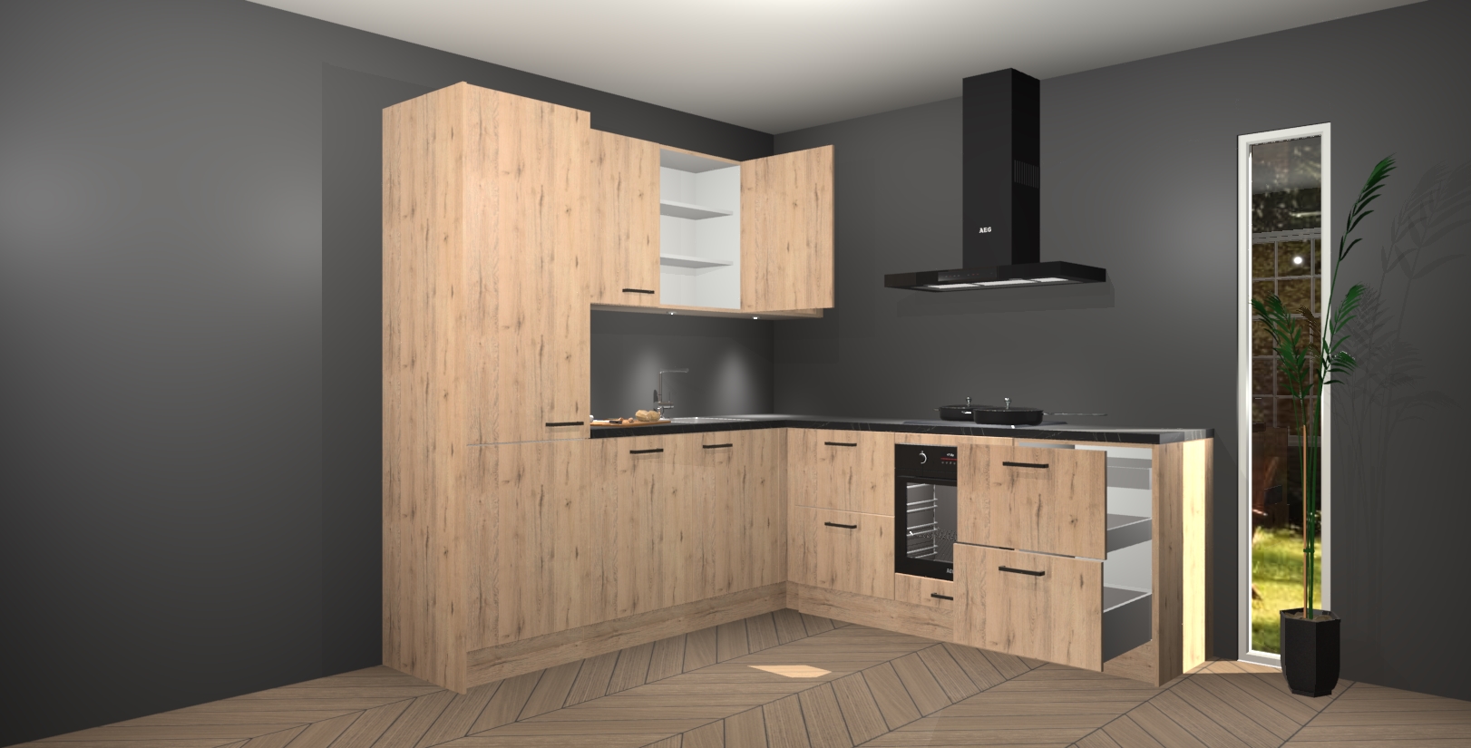 Inclusief plinten, stelpoten en werkblad