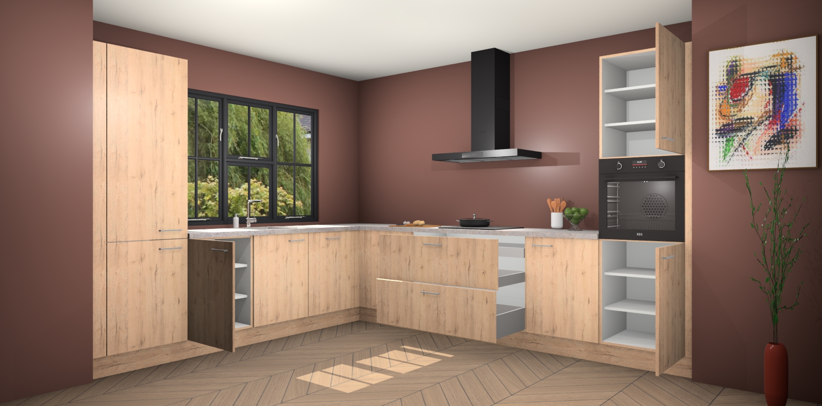 In deze box zijn alle kleuren verzameld van de deuren en werkbladen. Vraag de gratis kleurenbox aan en kijk thuis rustig verder!