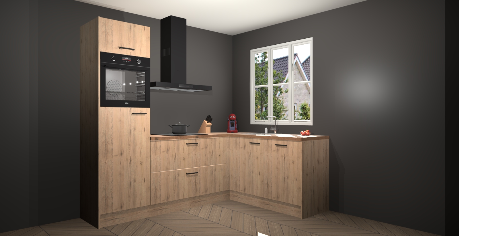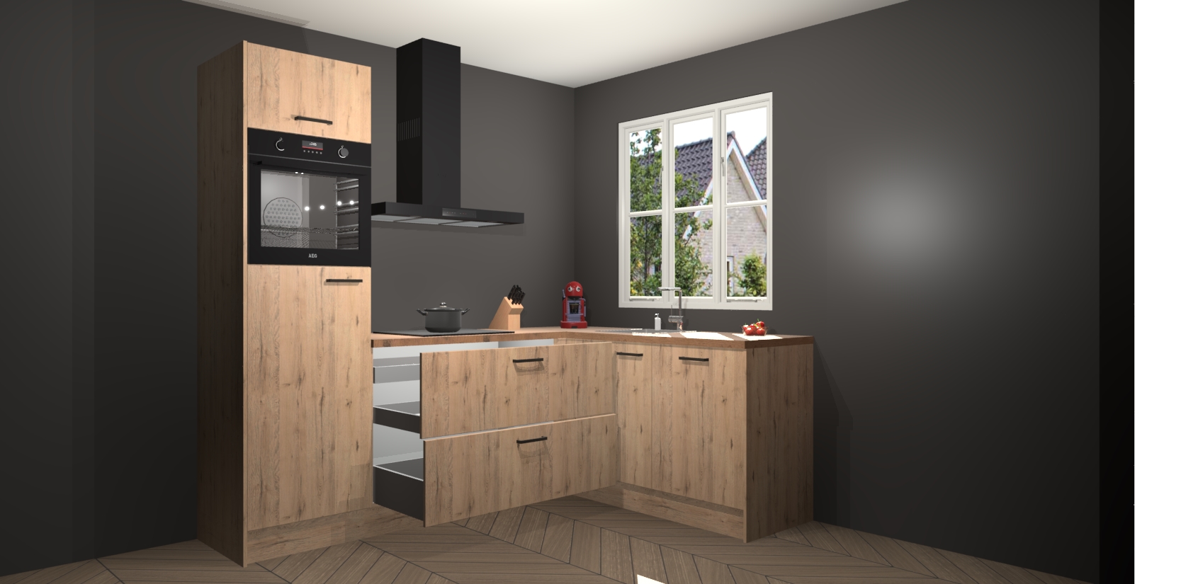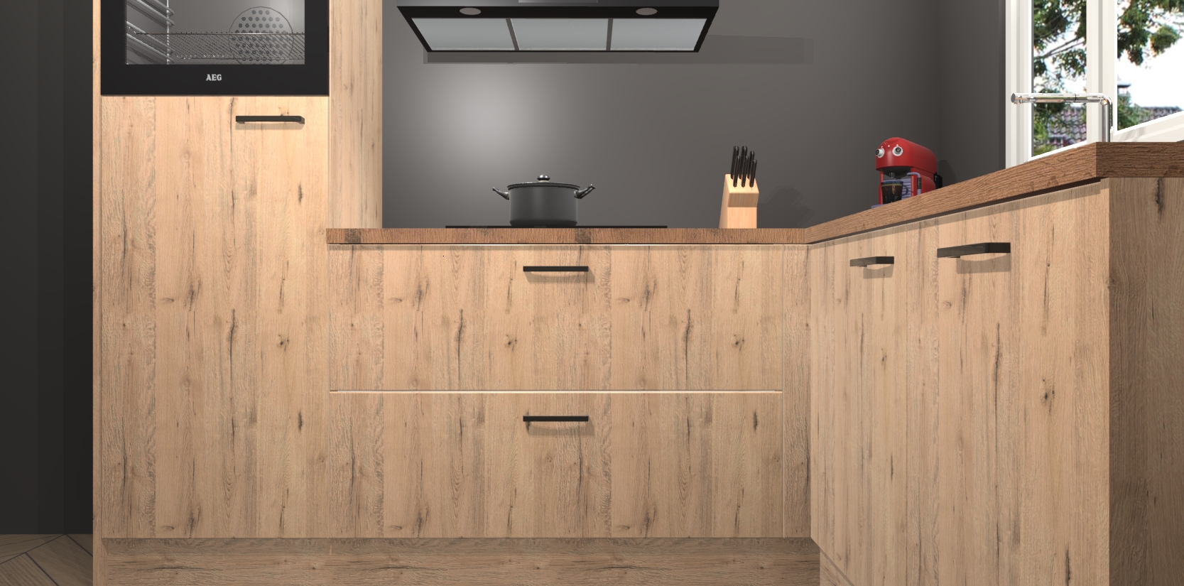 Dit model biedt u voldoende opbergruimte en vijf ingebouwde apparaten: een oven, inductiekookplaat, afzuigkap, vaatwasser en koelkast. Deze apparaten kunnen gemakkelijk worden geüpgrade naar AEG nadat u besteld heeft. De verschillende laden en kastjes bevatten softclose-deuren waardoor ze gezellig dichtvallen met een geruststellend helemaal geruisloos geluid. En dat is nog niet alles! We garanderen ook dat de prijs altijd laag blijft - dus haal nu uw Madera Natuur keuken Victoria terwijl het kan.