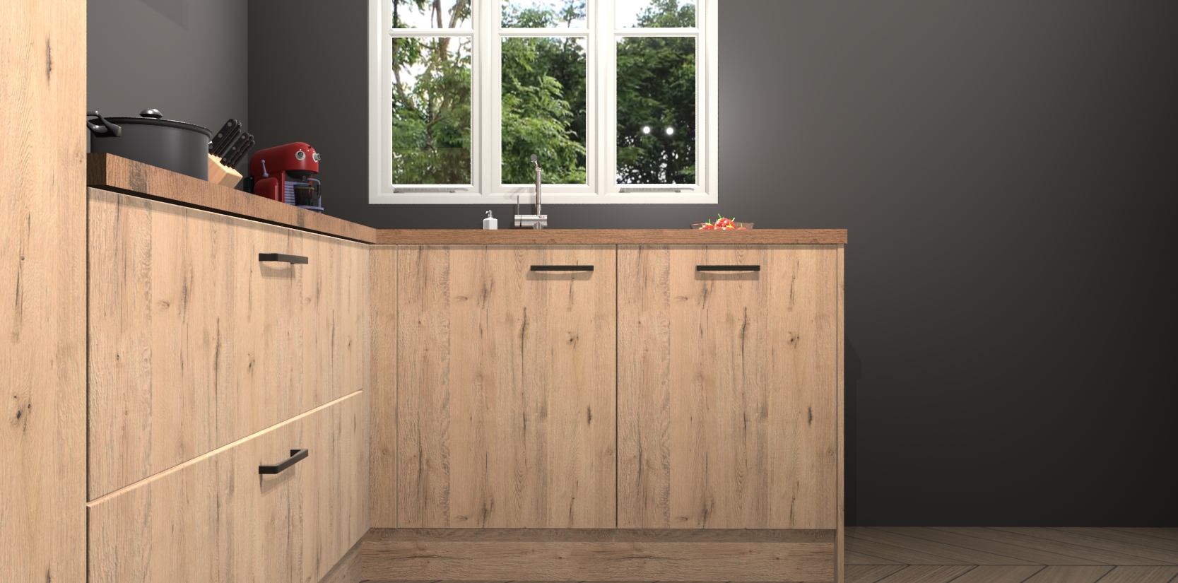 Bestellen was nog nooit zo makkelijk en we leveren met slechts 7 weken; zodra de keuken arriveert staan de kasten voor gemonteerd klaar om er alles aan te doen dat u hem gemakkelijk zelf kunt installeren! Eén ding is zeker: met de Madera Natuur keuken Victoria slaagt u erin modischer, modernere keukens uit te rusten die tientallen jaren meegaan! Haal snel uw Madera Natuur keuken Victoria - of u nu net begint of al 'levenservaring' hebt in de keukendroomloopbaan - want dit topmodel van onze collectie wilt u absoluut niet missen.