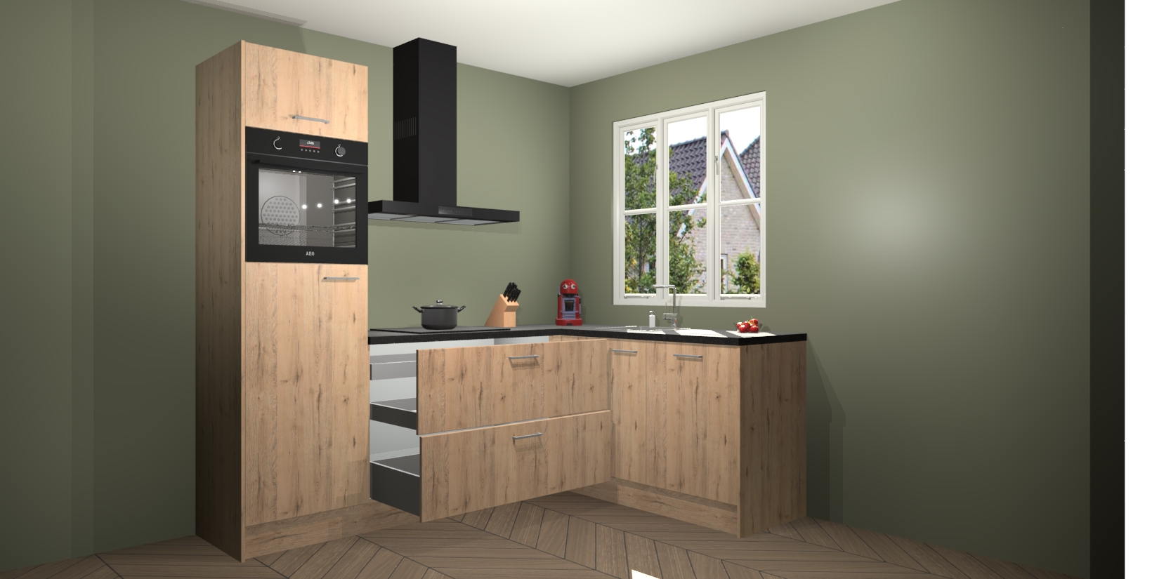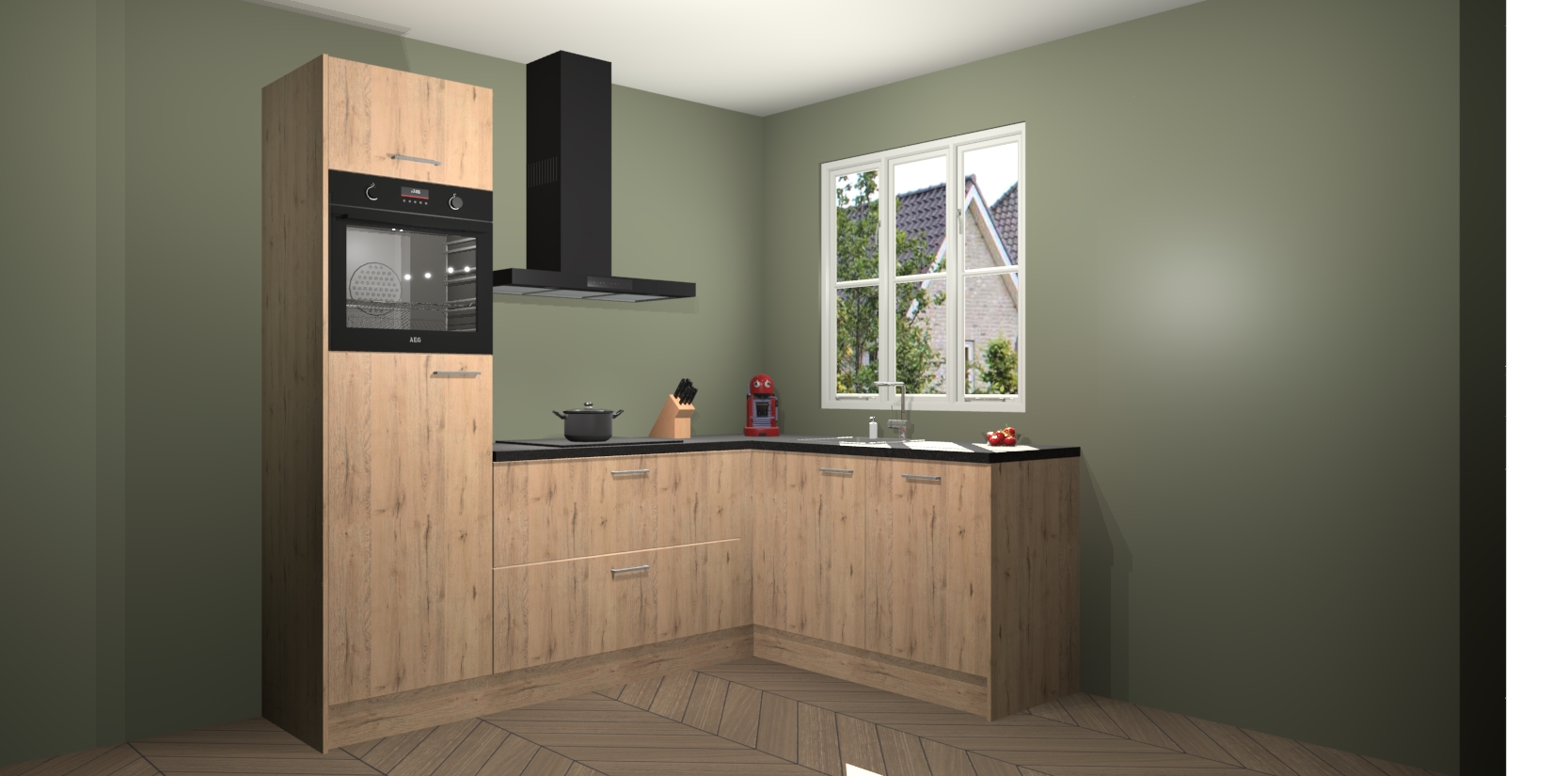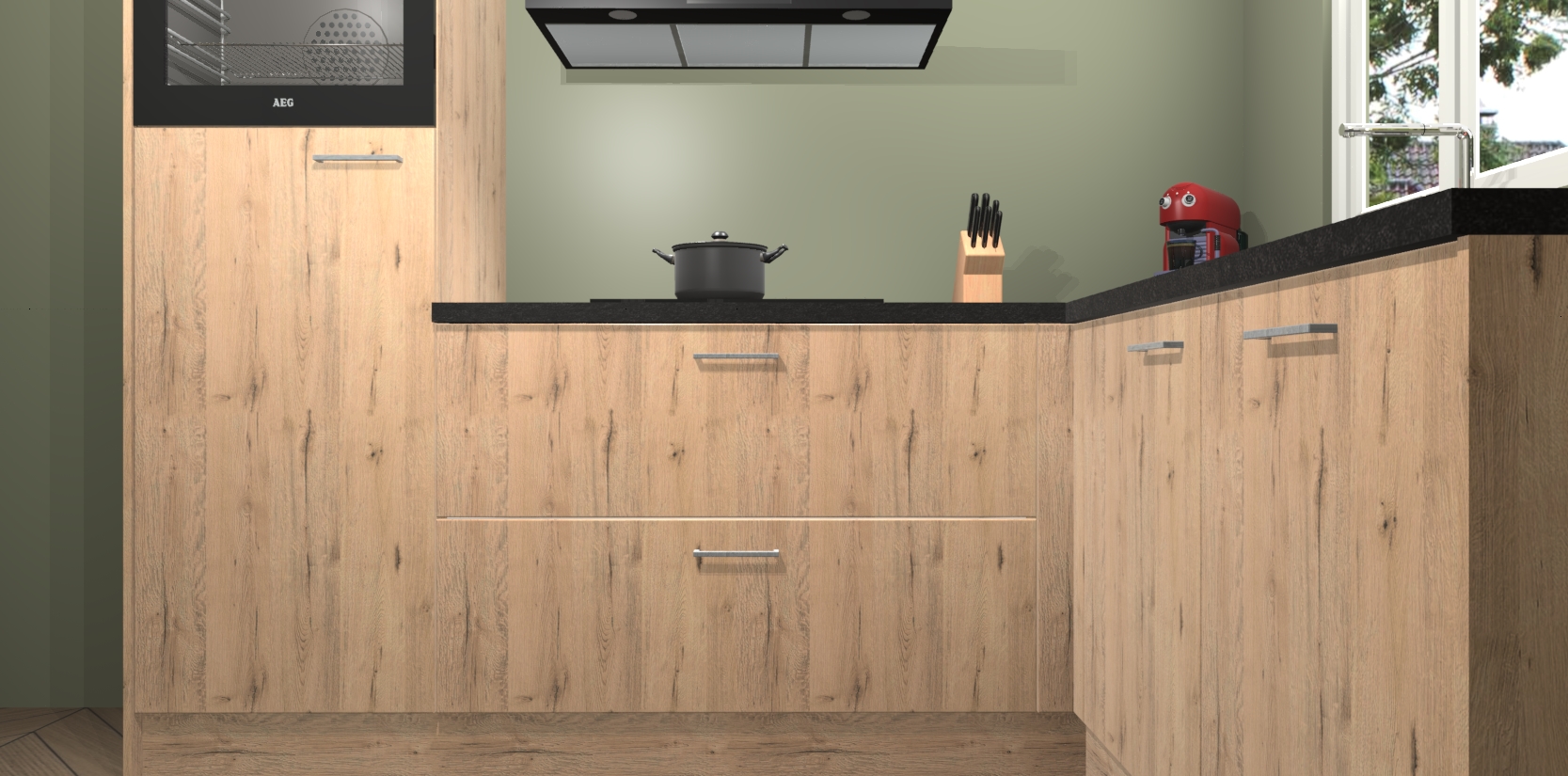 Dit model biedt u voldoende opbergruimte en vijf ingebouwde apparaten: een oven, inductiekookplaat, afzuigkap, vaatwasser en koelkast. Deze apparaten kunnen gemakkelijk worden geüpgrade naar AEG nadat u besteld heeft. De verschillende laden en kastjes bevatten softclose-deuren waardoor ze gezellig dichtvallen met een geruststellend helemaal geruisloos geluid. En dat is nog niet alles! We garanderen ook dat de prijs altijd laag blijft - dus haal nu uw Madera Natuur keuken Victoria terwijl het kan.