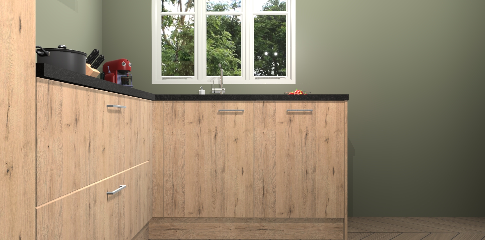 Bestellen was nog nooit zo makkelijk en we leveren met slechts 7 weken; zodra de keuken arriveert staan de kasten voor gemonteerd klaar om er alles aan te doen dat u hem gemakkelijk zelf kunt installeren! Eén ding is zeker: met de Madera Natuur keuken Victoria slaagt u erin modischer, modernere keukens uit te rusten die tientallen jaren meegaan! Haal snel uw Madera Natuur keuken Victoria - of u nu net begint of al 'levenservaring' hebt in de keukendroomloopbaan - want dit topmodel van onze collectie wilt u absoluut niet missen.