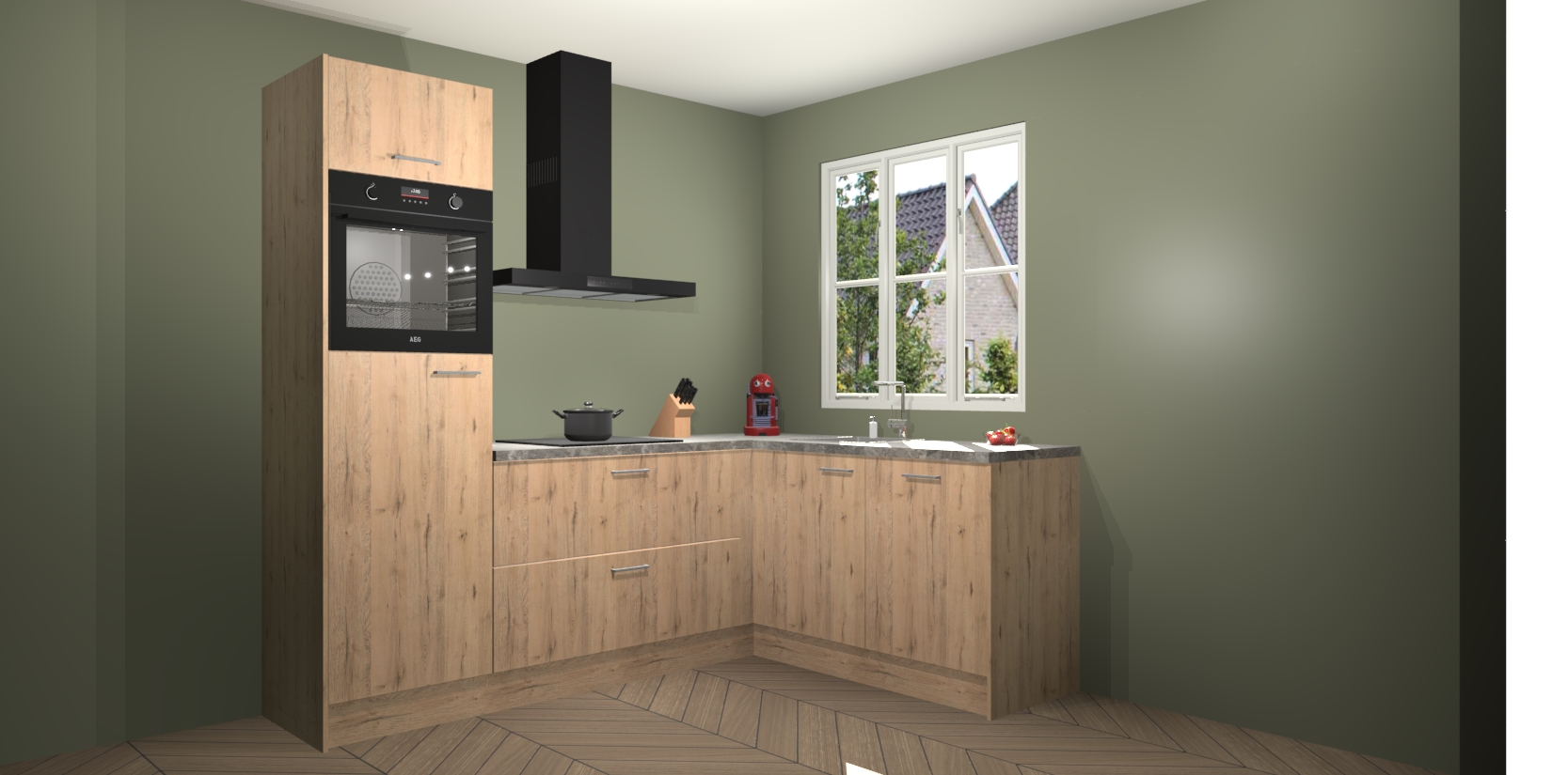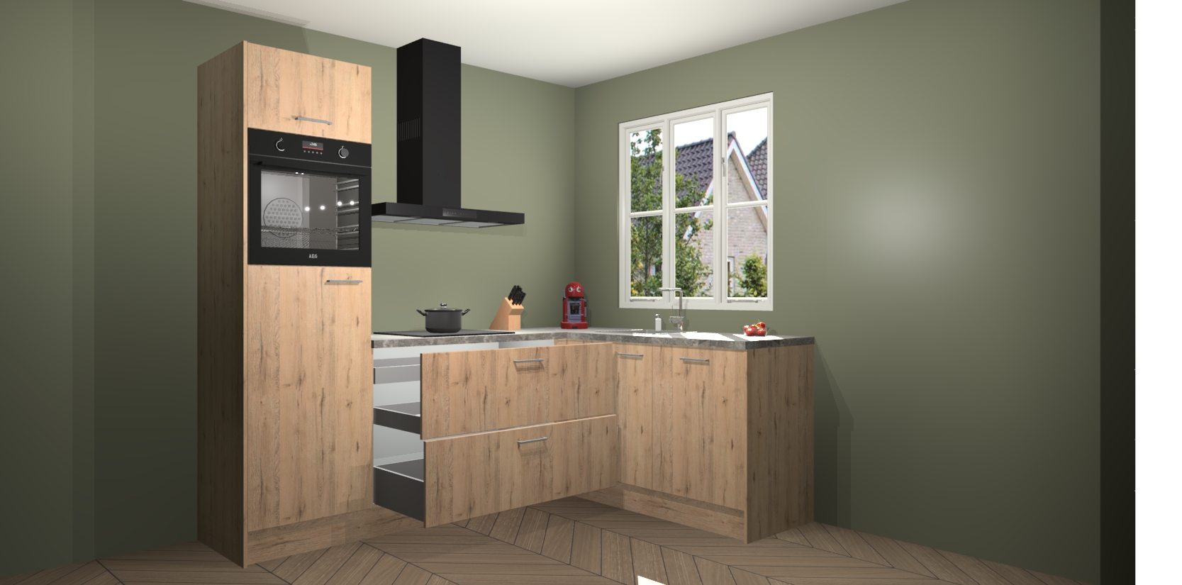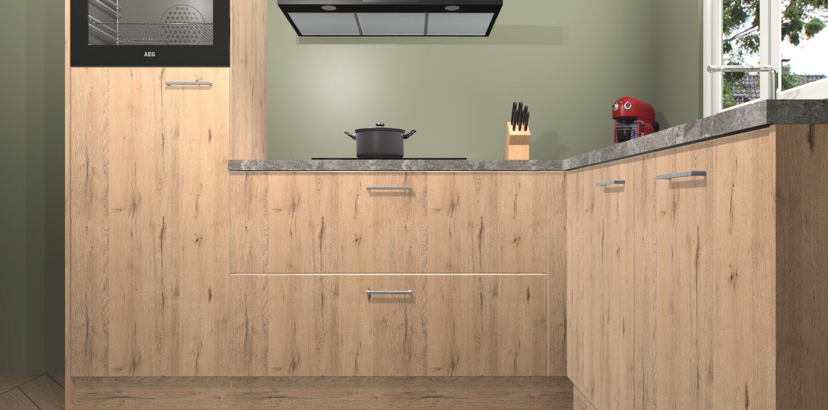 Dit model biedt u voldoende opbergruimte en vijf ingebouwde apparaten: een oven, inductiekookplaat, afzuigkap, vaatwasser en koelkast. Deze apparaten kunnen gemakkelijk worden geüpgrade naar AEG nadat u besteld heeft. De verschillende laden en kastjes bevatten softclose-deuren waardoor ze gezellig dichtvallen met een geruststellend helemaal geruisloos geluid. En dat is nog niet alles! We garanderen ook dat de prijs altijd laag blijft - dus haal nu uw Madera Natuur keuken Victoria terwijl het kan.