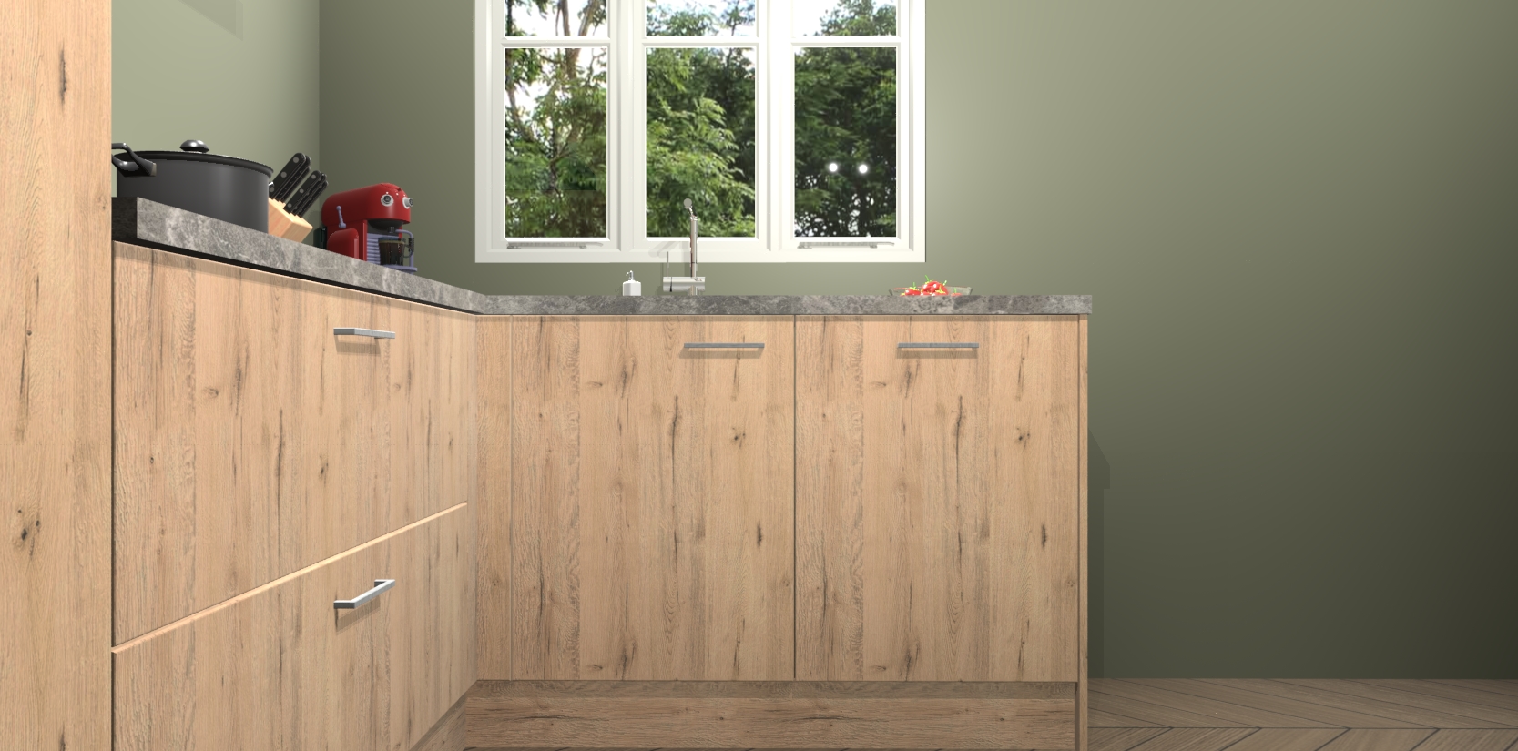 Bestellen was nog nooit zo makkelijk en we leveren met slechts 7 weken; zodra de keuken arriveert staan de kasten voor gemonteerd klaar om er alles aan te doen dat u hem gemakkelijk zelf kunt installeren! Eén ding is zeker: met de Madera Natuur keuken Victoria slaagt u erin modischer, modernere keukens uit te rusten die tientallen jaren meegaan! Haal snel uw Madera Natuur keuken Victoria - of u nu net begint of al 'levenservaring' hebt in de keukendroomloopbaan - want dit topmodel van onze collectie wilt u absoluut niet missen.