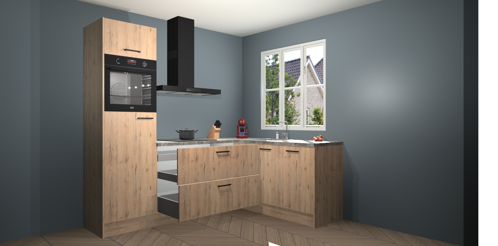 Dit model biedt u voldoende opbergruimte en vijf ingebouwde apparaten: een oven, inductiekookplaat, afzuigkap, vaatwasser en koelkast. Deze apparaten kunnen gemakkelijk worden geüpgrade naar AEG nadat u besteld heeft. De verschillende laden en kastjes bevatten softclose-deuren waardoor ze gezellig dichtvallen met een geruststellend helemaal geruisloos geluid. En dat is nog niet alles! We garanderen ook dat de prijs altijd laag blijft - dus haal nu uw Madera Natuur keuken Victoria terwijl het kan.