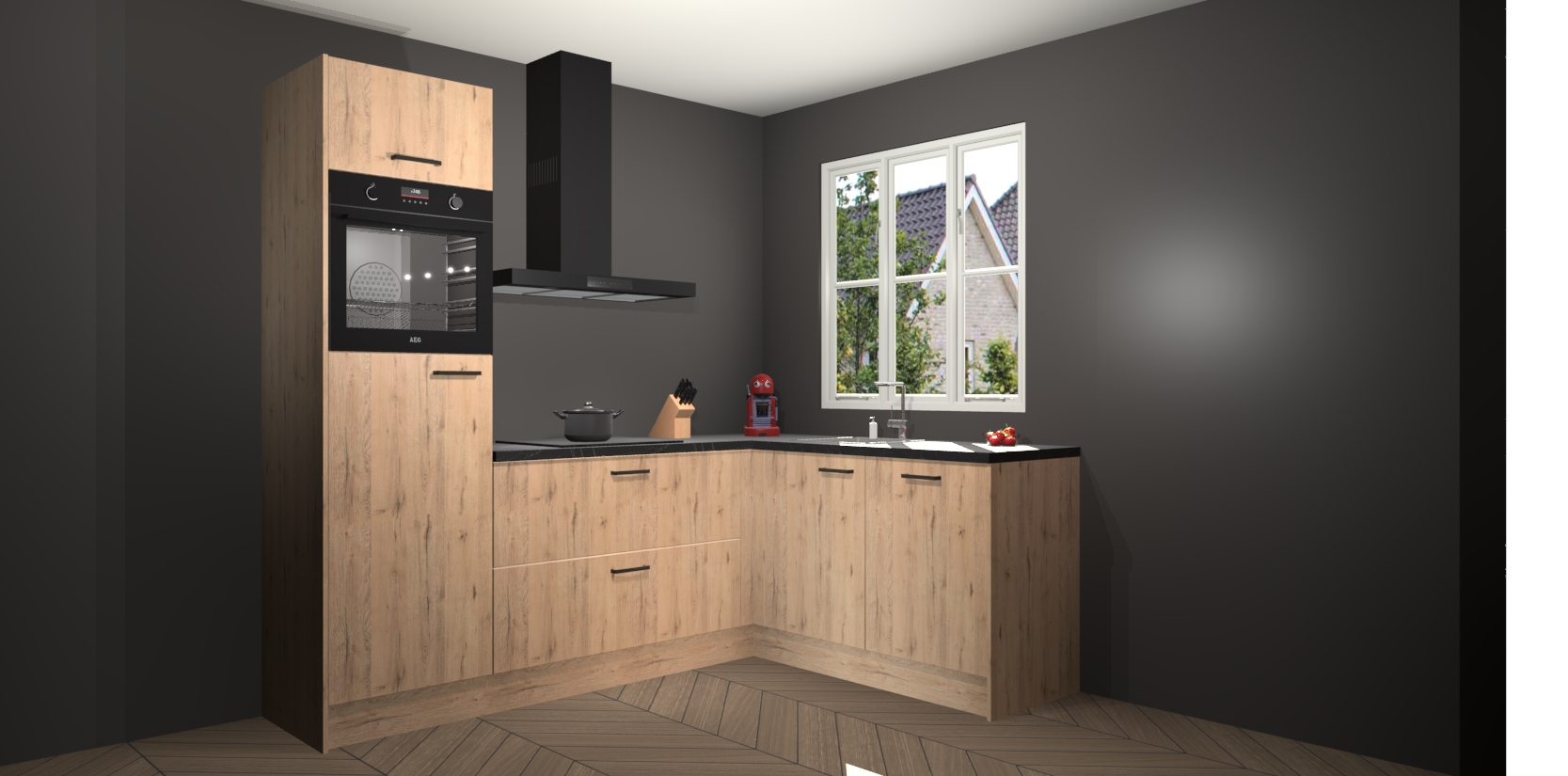 Dit model biedt u voldoende opbergruimte en vijf ingebouwde apparaten: een oven, inductiekookplaat, afzuigkap, vaatwasser en koelkast. Deze apparaten kunnen gemakkelijk worden geüpgrade naar AEG nadat u besteld heeft. De verschillende laden en kastjes bevatten softclose-deuren waardoor ze gezellig dichtvallen met een geruststellend helemaal geruisloos geluid. En dat is nog niet alles! We garanderen ook dat de prijs altijd laag blijft - dus haal nu uw Madera Natuur keuken Victoria terwijl het kan.