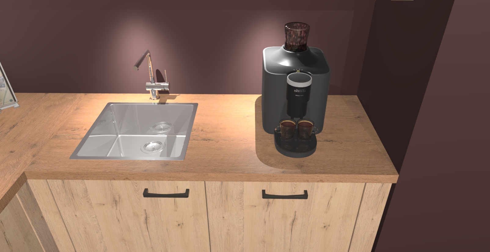 - De spoelbak is nog niet in gevreesd. Dit dient tijdens het werk gedaan te worden