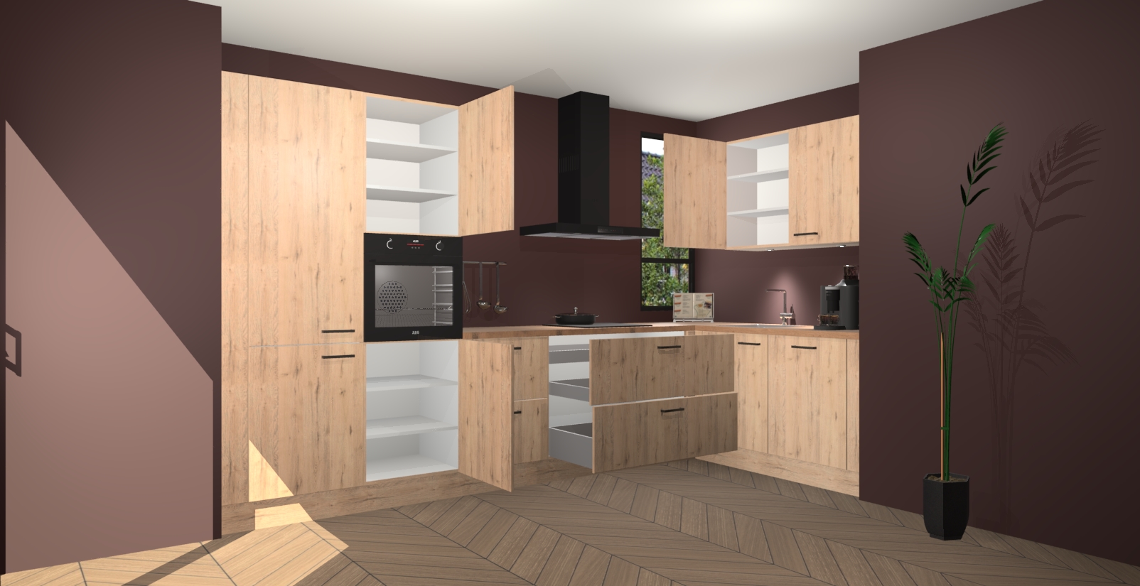 Welkom in uw nieuwe moderne keuken! Laat ons u voorstellen aan de Madera Natuur keuken Vlaanderen . Deze prachtige hoekkeuken straalt exclusiviteit en luxe uit als geen ander. Het strakke design, de tijdloze kleuren en het model maken van deze keuken een moderne klassieker. En met voldoende opbergruimte heeft deze keuken echt voor ieder wat wils.