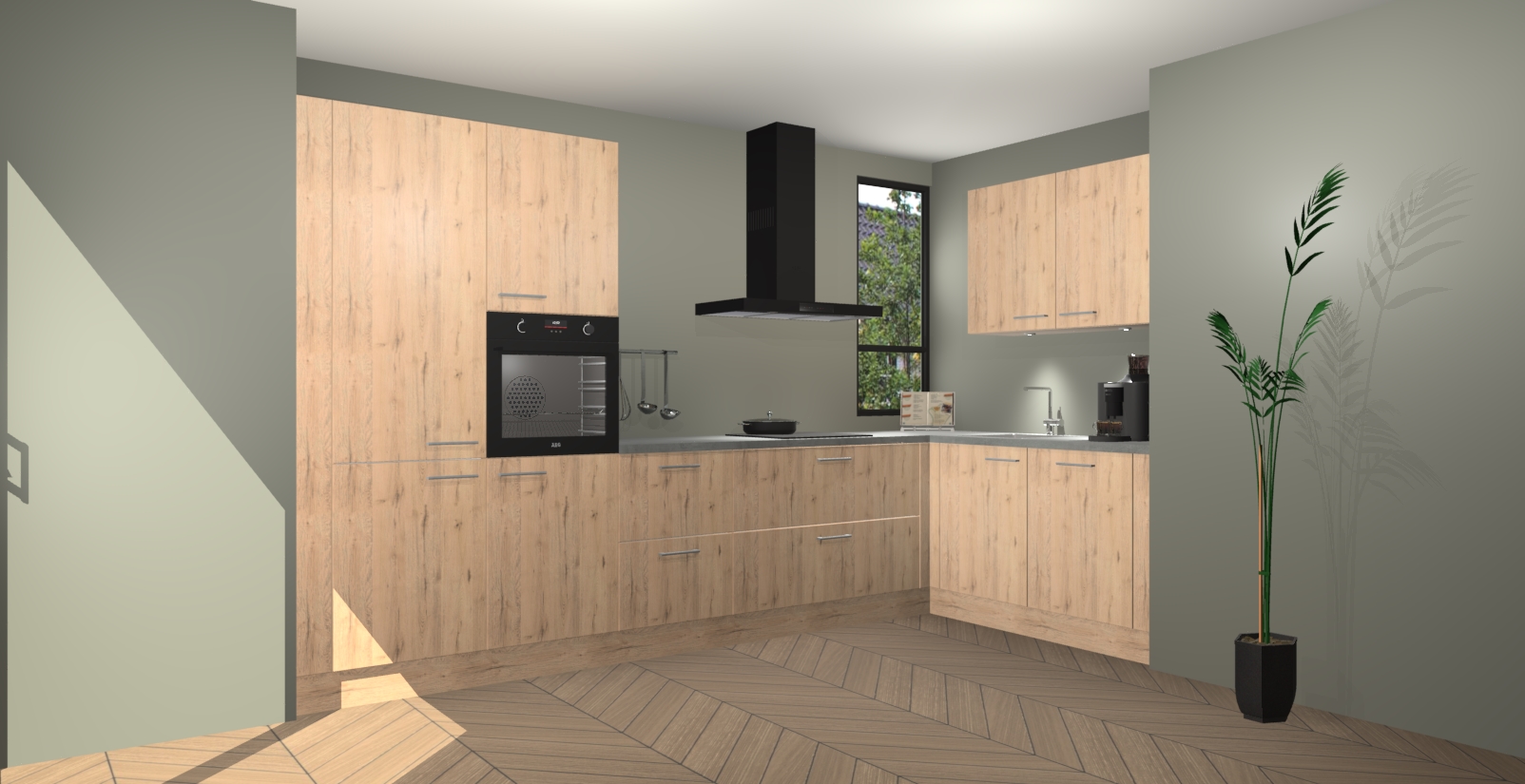 Welkom in uw nieuwe moderne keuken! Laat ons u voorstellen aan de Madera Natuur keuken Vlaanderen . Deze prachtige hoekkeuken straalt exclusiviteit en luxe uit als geen ander. Het strakke design, de tijdloze kleuren en het model maken van deze keuken een moderne klassieker. En met voldoende opbergruimte heeft deze keuken echt voor ieder wat wils.
