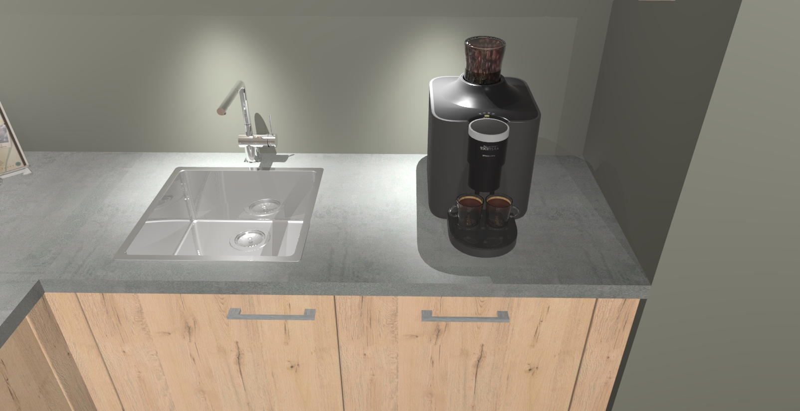 - De spoelbak is nog niet in gevreesd. Dit dient tijdens het werk gedaan te worden