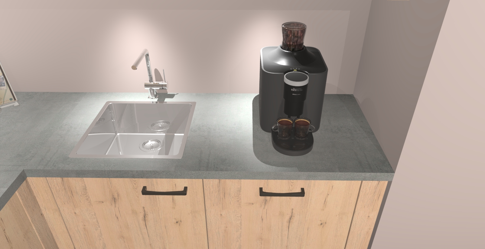 - De spoelbak is nog niet in gevreesd. Dit dient tijdens het werk gedaan te worden