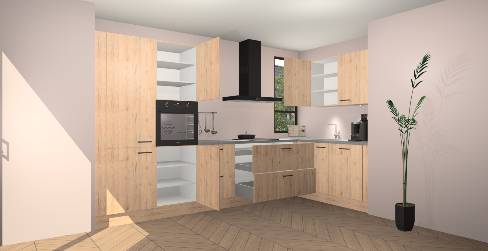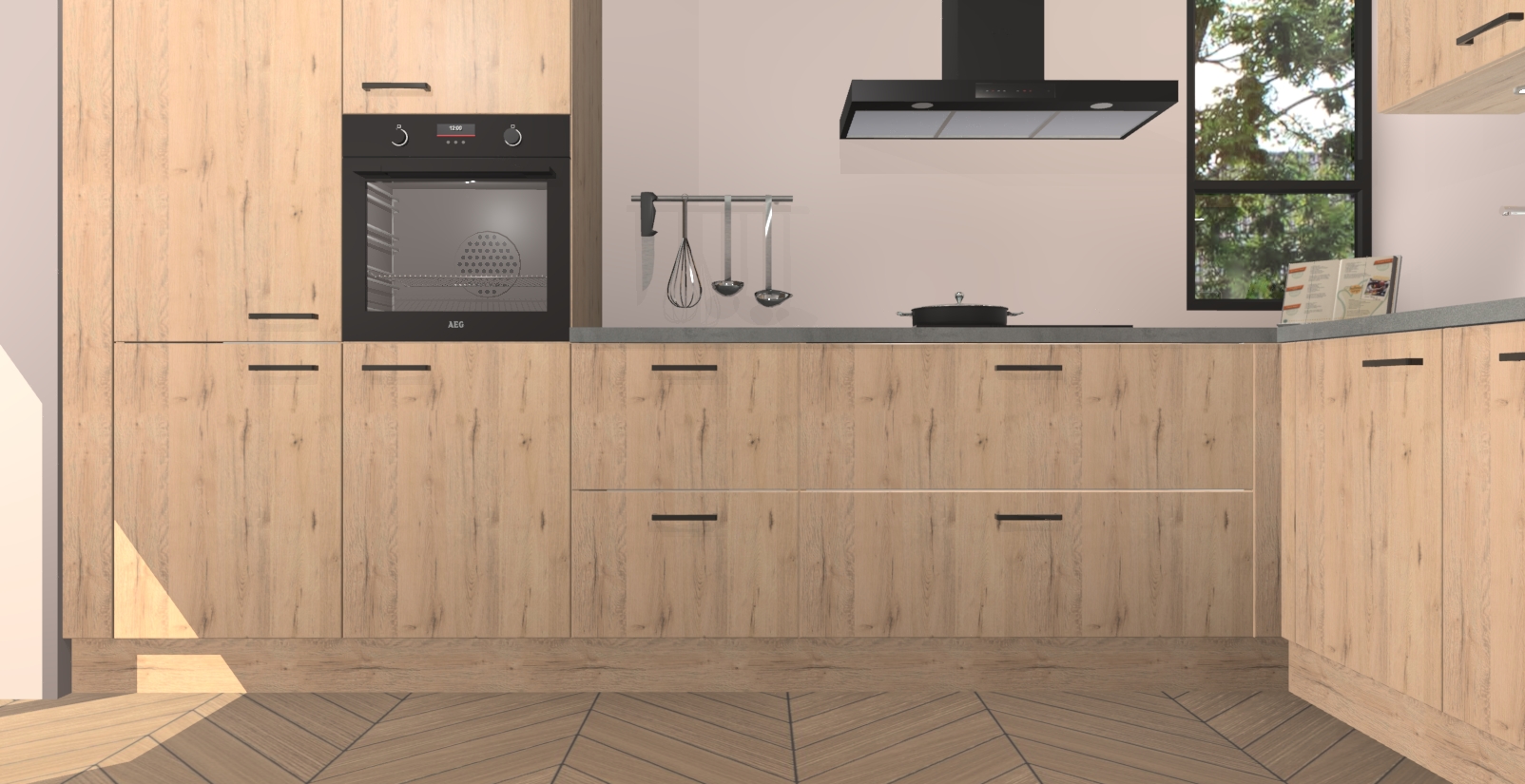 Welkom in uw nieuwe moderne keuken! Laat ons u voorstellen aan de Madera Natuur keuken Vlaanderen . Deze prachtige hoekkeuken straalt exclusiviteit en luxe uit als geen ander. Het strakke design, de tijdloze kleuren en het model maken van deze keuken een moderne klassieker. En met voldoende opbergruimte heeft deze keuken echt voor ieder wat wils.