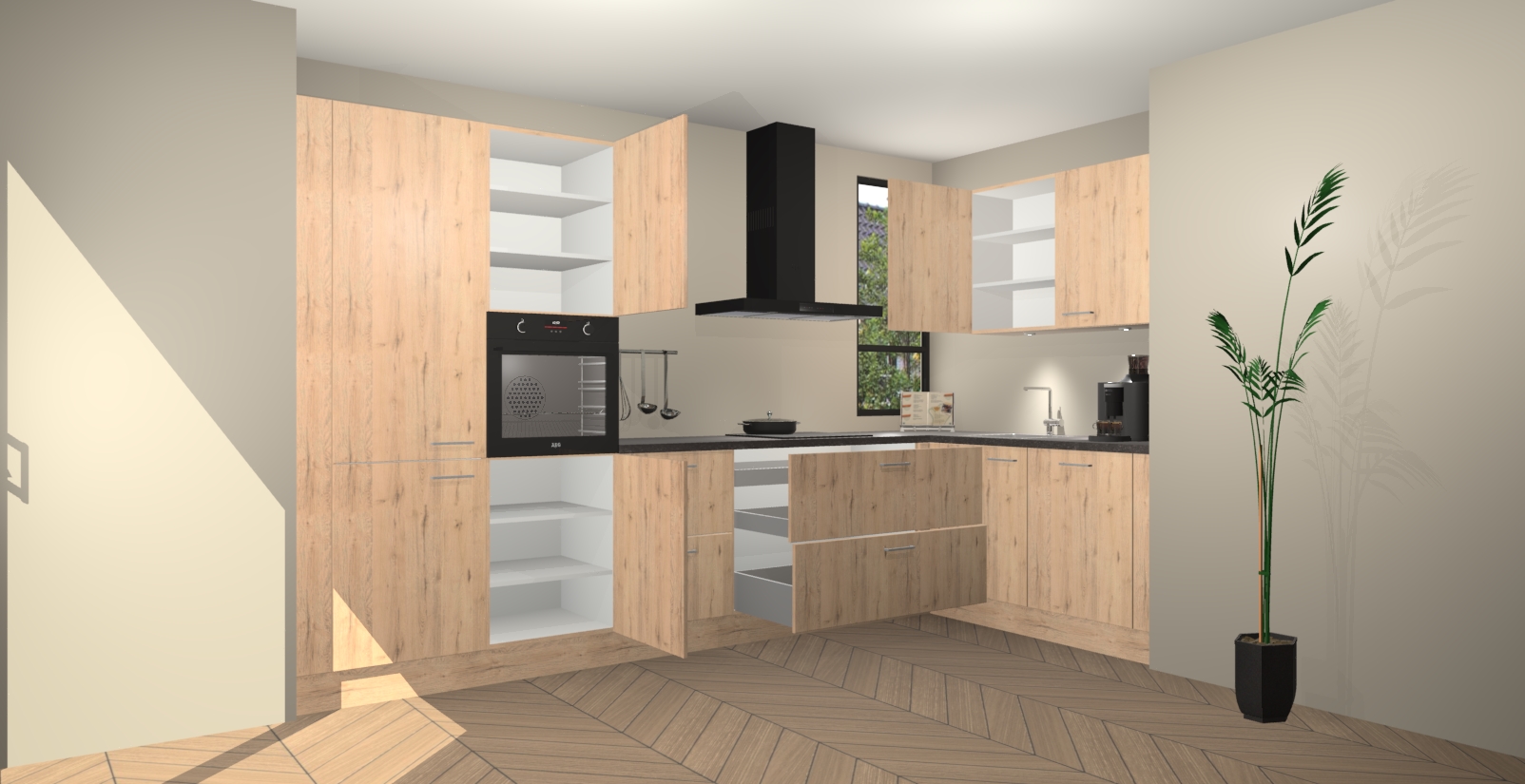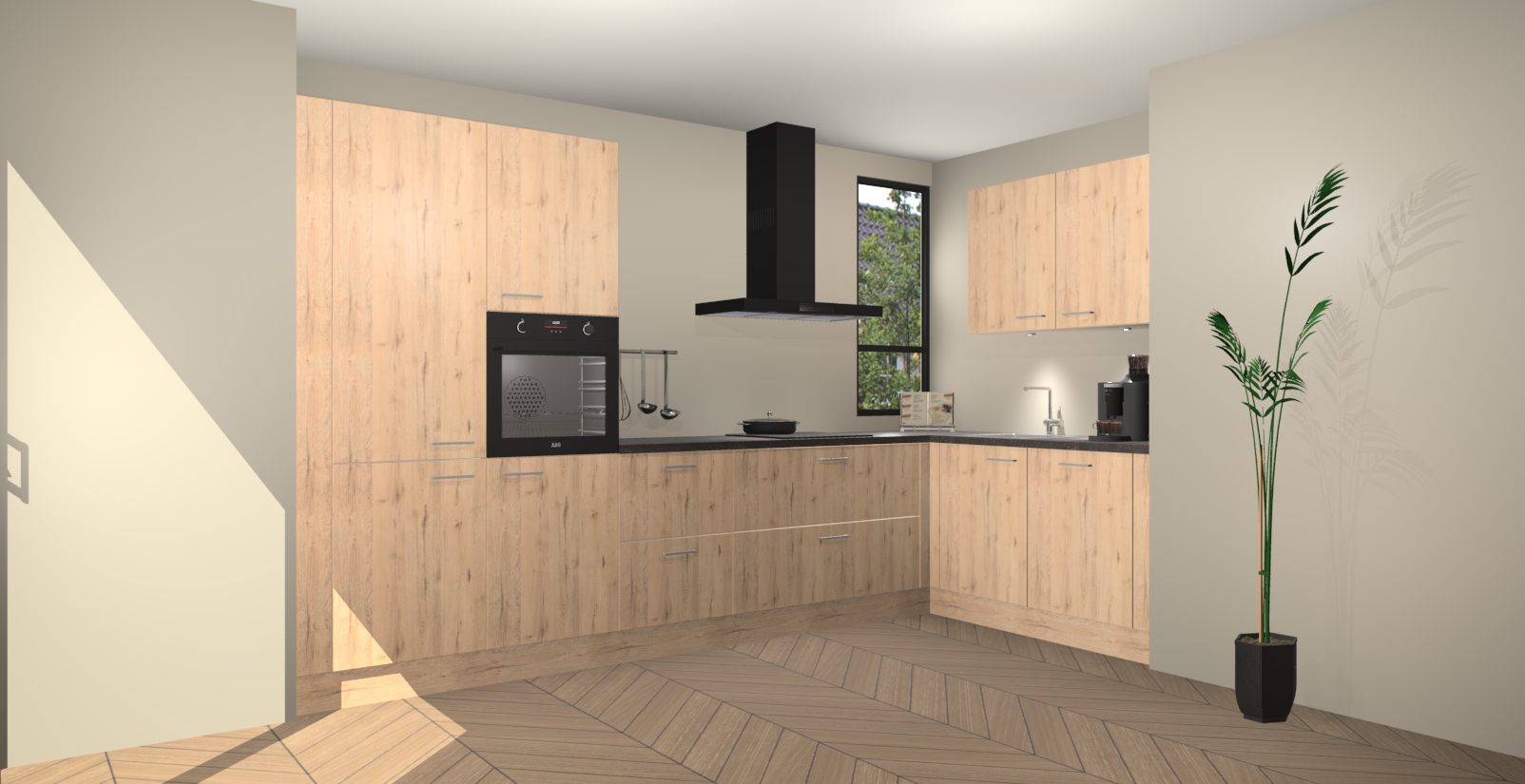 Welkom in uw nieuwe moderne keuken! Laat ons u voorstellen aan de Madera Natuur keuken Vlaanderen . Deze prachtige hoekkeuken straalt exclusiviteit en luxe uit als geen ander. Het strakke design, de tijdloze kleuren en het model maken van deze keuken een moderne klassieker. En met voldoende opbergruimte heeft deze keuken echt voor ieder wat wils.