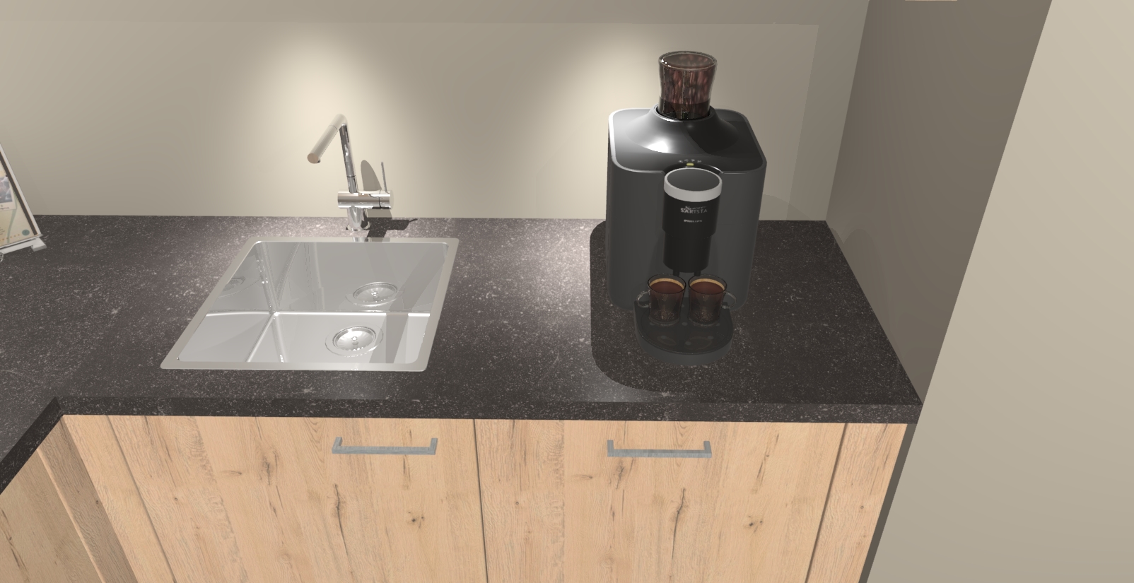 • De spoelbak is nog niet in gevreesd. Dit dient tijdens het werk gedaan te worden