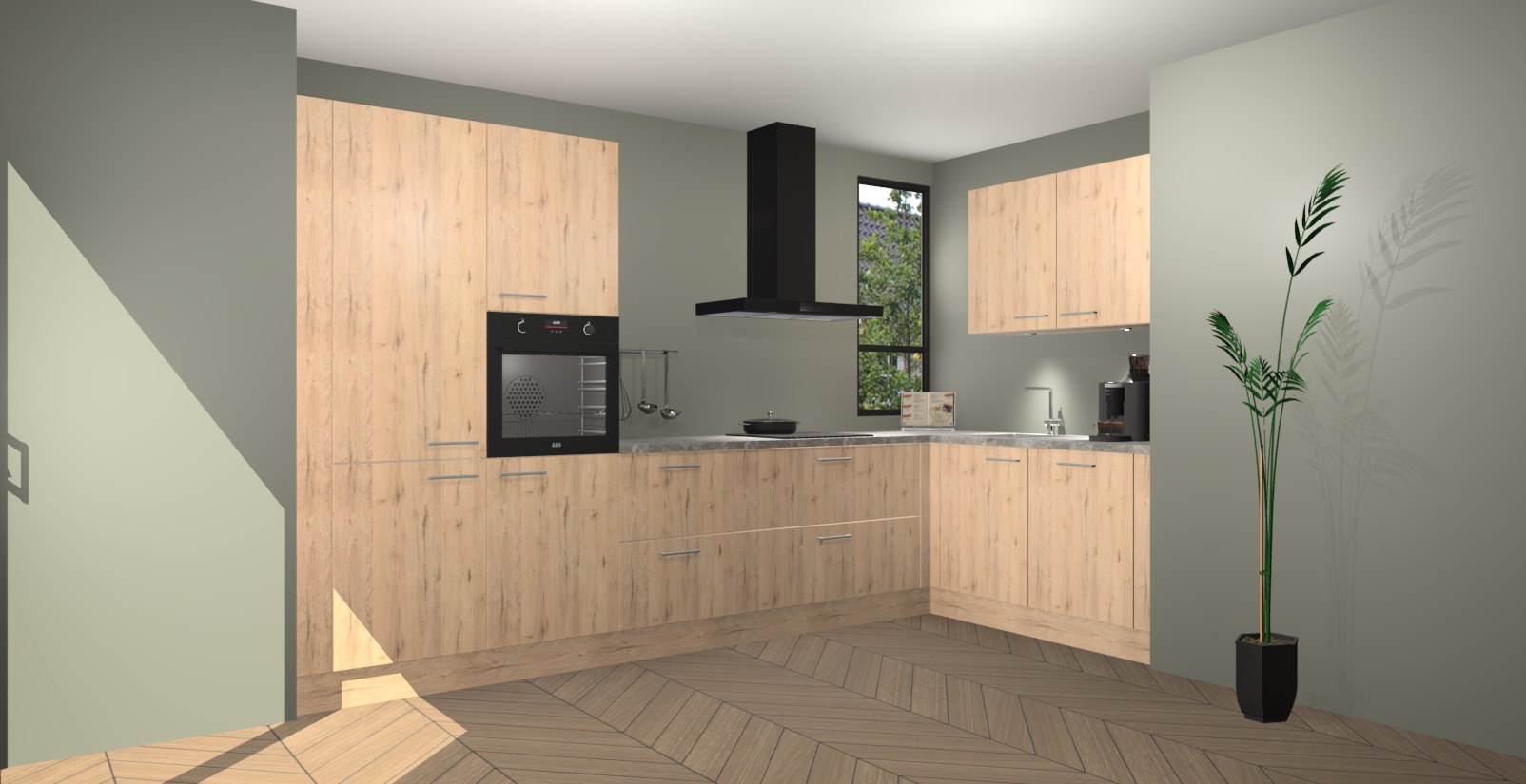 Welkom in uw nieuwe moderne keuken! Laat ons u voorstellen aan de Madera Natuur keuken Vlaanderen . Deze prachtige hoekkeuken straalt exclusiviteit en luxe uit als geen ander. Het strakke design, de tijdloze kleuren en het model maken van deze keuken een moderne klassieker. En met voldoende opbergruimte heeft deze keuken echt voor ieder wat wils.