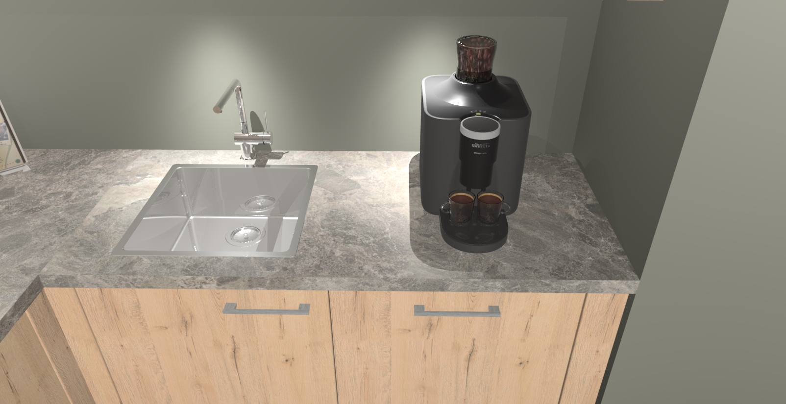 - De spoelbak is nog niet in gevreesd. Dit dient tijdens het werk gedaan te worden