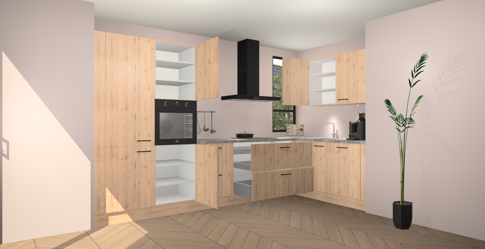 Welkom in uw nieuwe moderne keuken! Laat ons u voorstellen aan de Madera Natuur keuken Vlaanderen . Deze prachtige hoekkeuken straalt exclusiviteit en luxe uit als geen ander. Het strakke design, de tijdloze kleuren en het model maken van deze keuken een moderne klassieker. En met voldoende opbergruimte heeft deze keuken echt voor ieder wat wils.