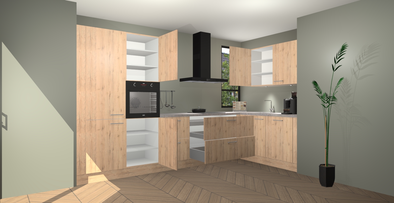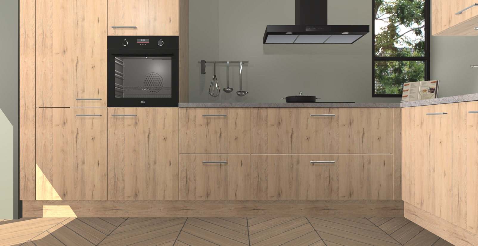 Welkom in uw nieuwe moderne keuken! Laat ons u voorstellen aan de Madera Natuur keuken Vlaanderen . Deze prachtige hoekkeuken straalt exclusiviteit en luxe uit als geen ander. Het strakke design, de tijdloze kleuren en het model maken van deze keuken een moderne klassieker. En met voldoende opbergruimte heeft deze keuken echt voor ieder wat wils.