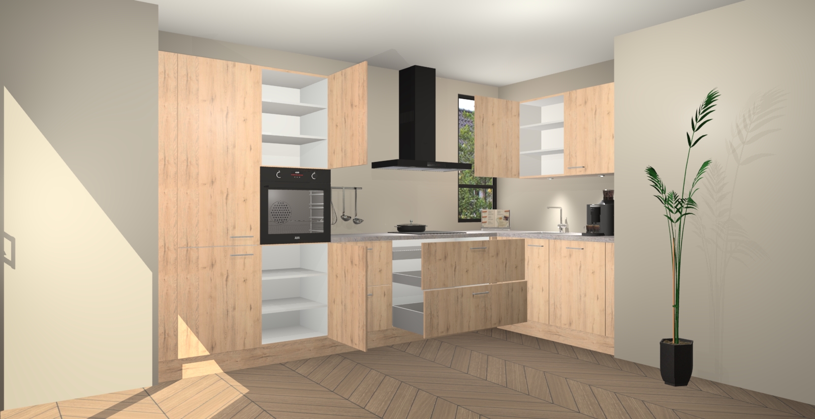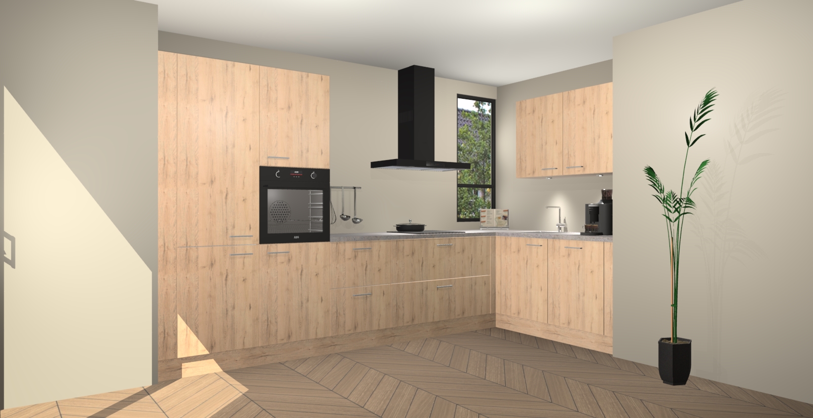 Welkom in uw nieuwe moderne keuken! Laat ons u voorstellen aan de Madera Natuur keuken Vlaanderen . Deze prachtige hoekkeuken straalt exclusiviteit en luxe uit als geen ander. Het strakke design, de tijdloze kleuren en het model maken van deze keuken een moderne klassieker. En met voldoende opbergruimte heeft deze keuken echt voor ieder wat wils.
