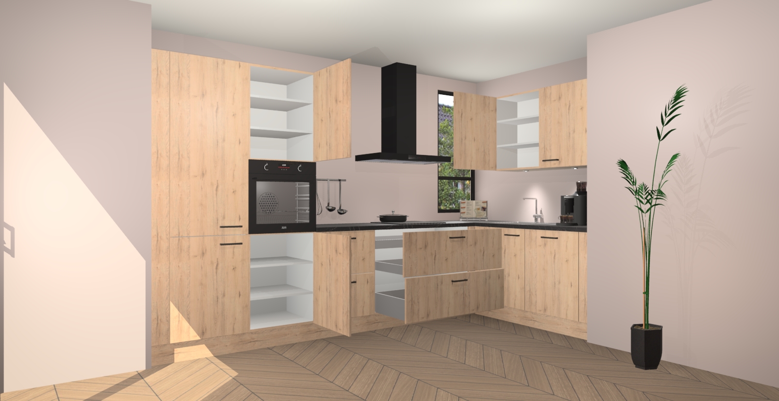 Welkom in uw nieuwe moderne keuken! Laat ons u voorstellen aan de Madera Natuur keuken Vlaanderen . Deze prachtige hoekkeuken straalt exclusiviteit en luxe uit als geen ander. Het strakke design, de tijdloze kleuren en het model maken van deze keuken een moderne klassieker. En met voldoende opbergruimte heeft deze keuken echt voor ieder wat wils.